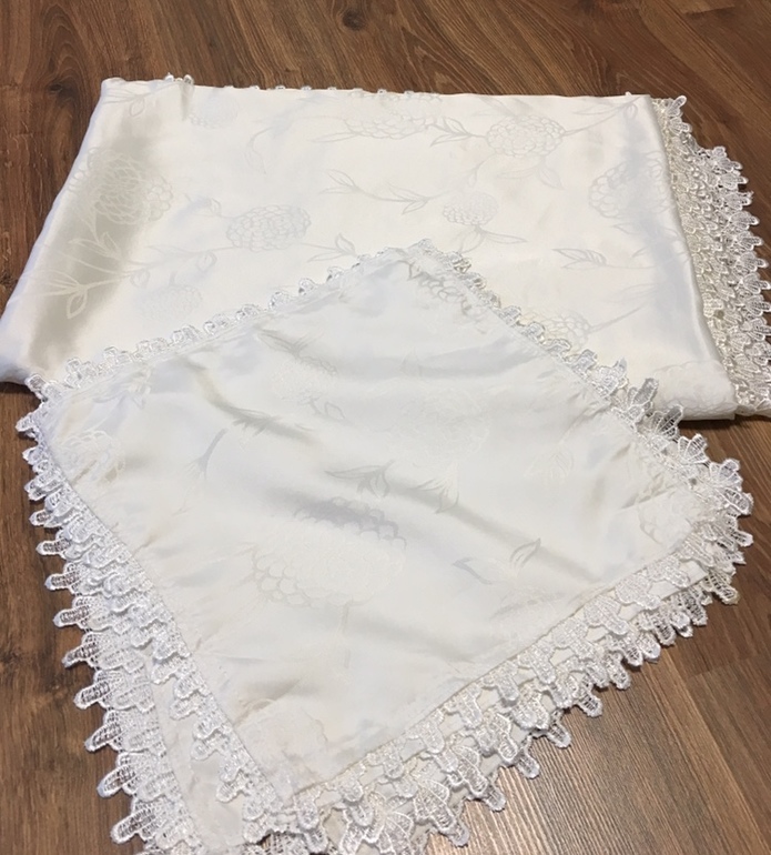 Скатерть и 6 салфеток без пятен, малюсенькие дырочки на скатерти от бингальских огней. Фото по запросу. Скатерть 400, салфетки 600 Салфетки в идеале.