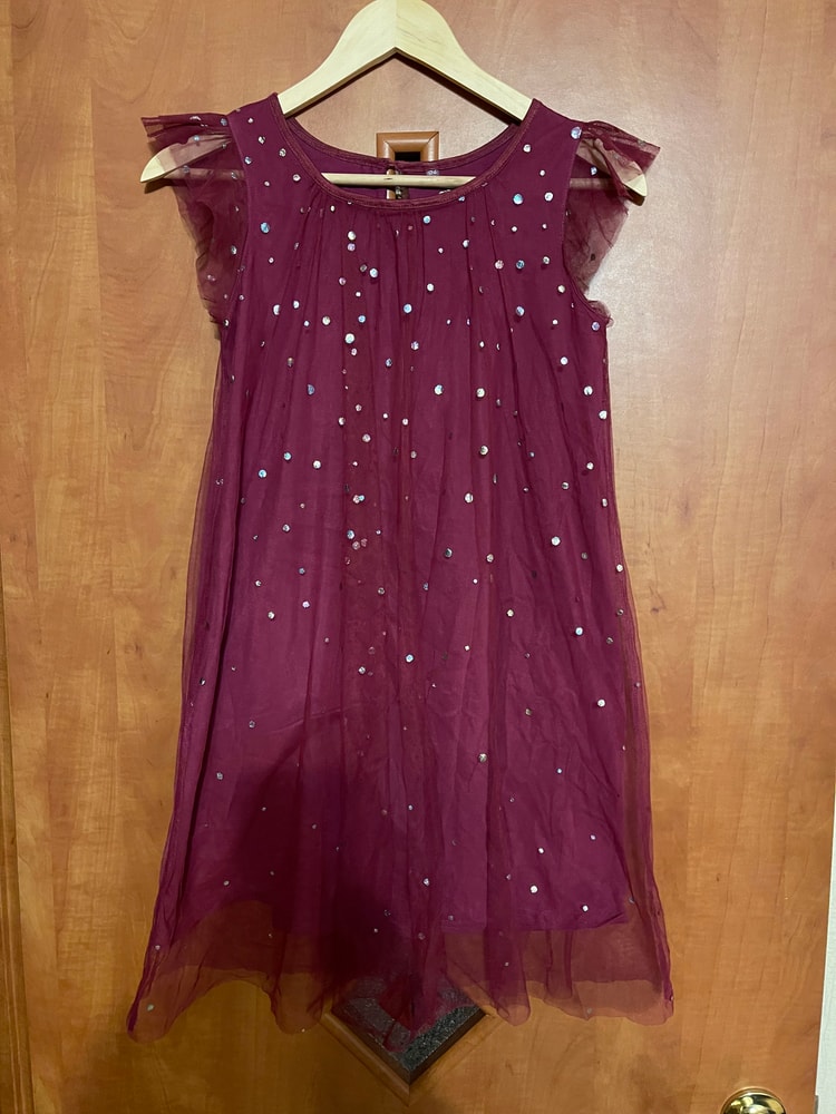 Платье размер 152 , длина 80 см. Одето на 1 мероприятие, состояние нового. Серебристые точки это не паетки, нанесено краской. Экв. 900.