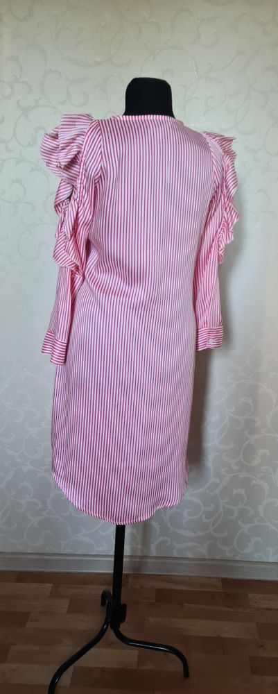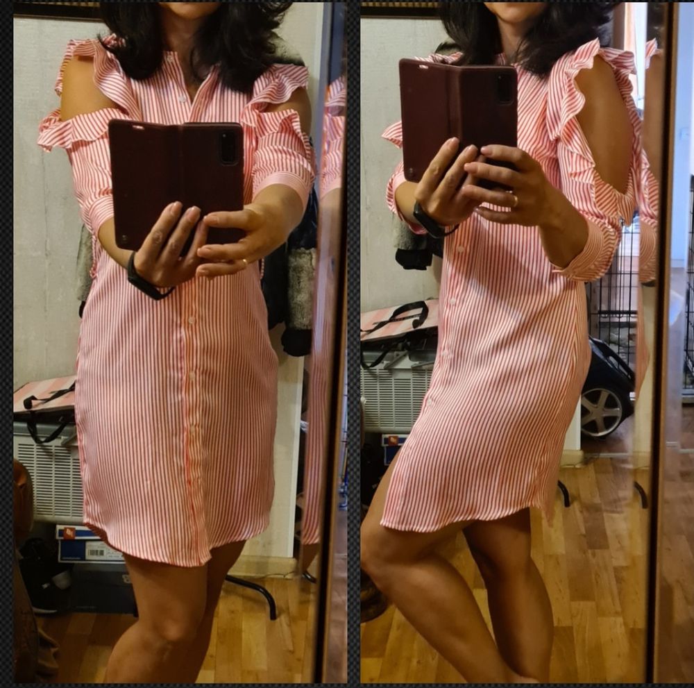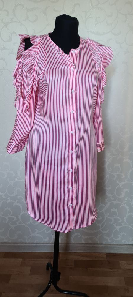 Joleen, платье-рубашка, Италия, сделано там же, новое без этикетки, маркировка S/M, но это S-ка, не больше, мне на 44-46 впритык, высочайшее качество, ткань струится, интересная эффектная модель, пояска при покупке не было, подойдёт любой белый, можно носить без него, экв.5000=