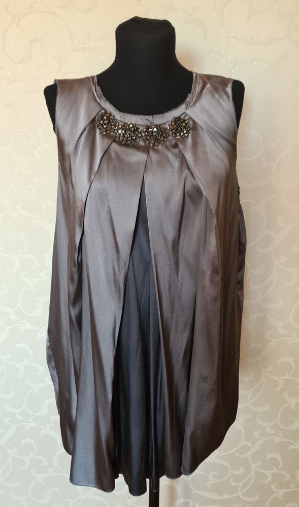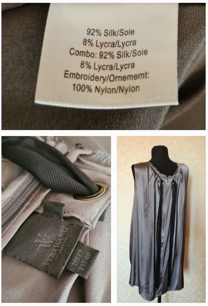 Блуза Vera Wang, на 48р отлично, 92% шёлк, 8"% лайкра, садится идеально за счёт лайкры, состояние новой вещи, основной цвет серый, вставка- тёмно-серая, экв 5000=
