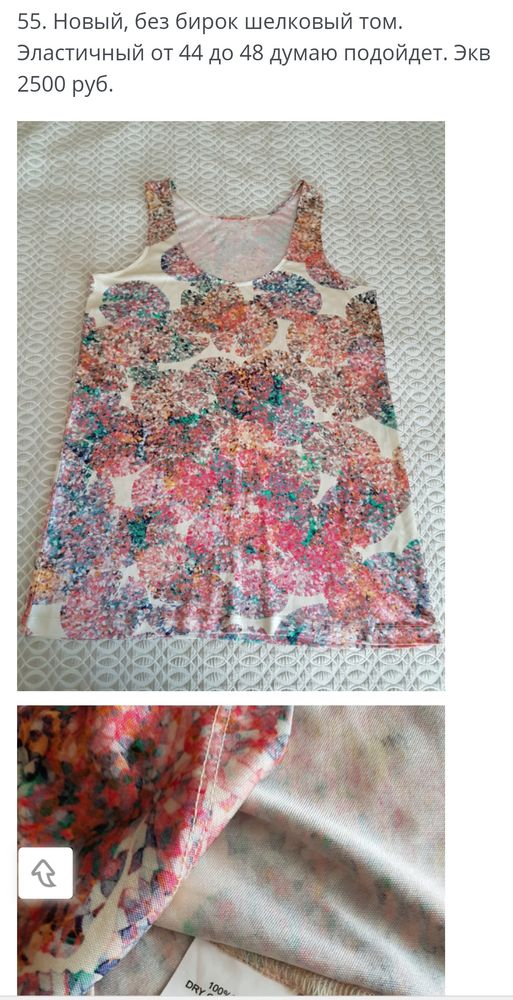 Итальянский Топ, на рS, надела несколько раз, внутренние этикетки срезала-просвечивали, но это вискоза, нежнейшая, 1500=