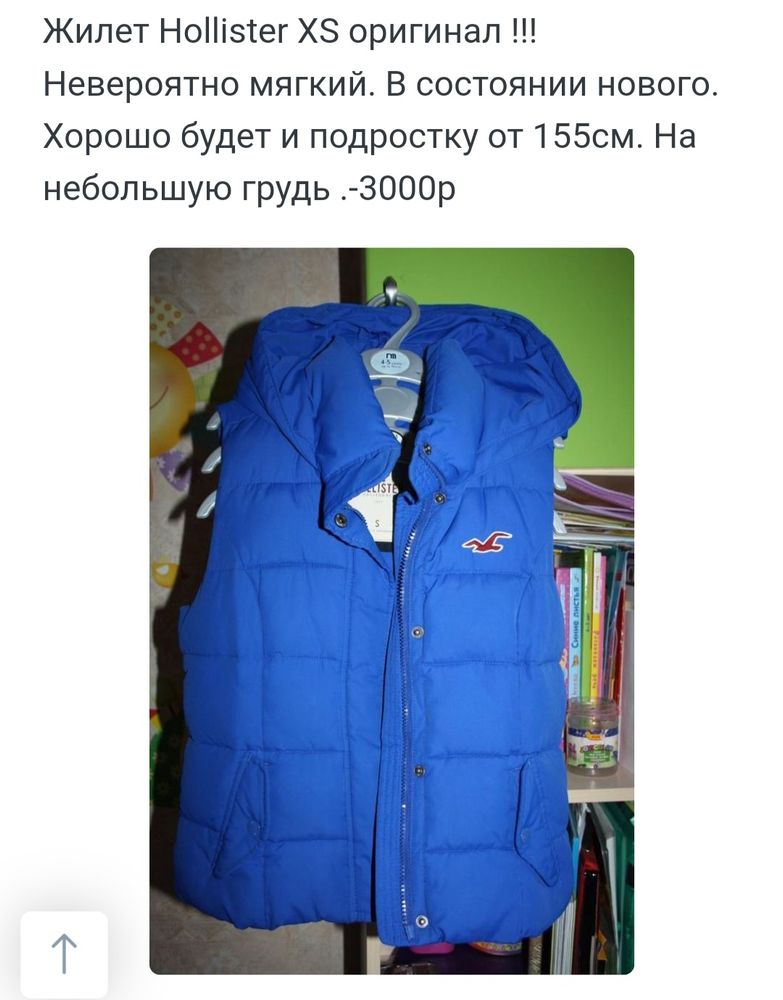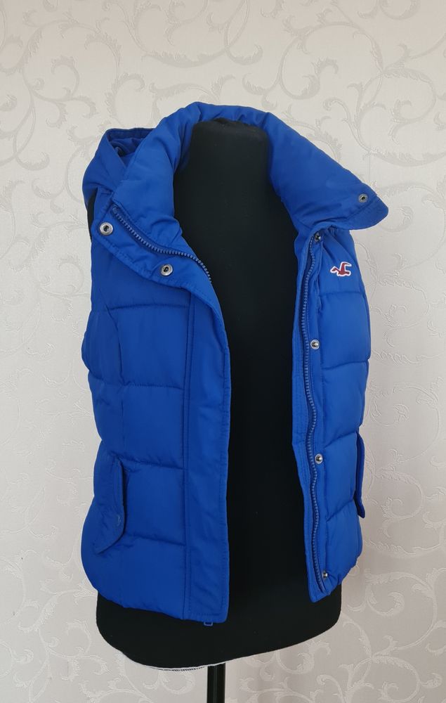 Жилет Hollister, подойдёт на XS, красивой цвет-синий электрик, очень хорошее состояние, небольшой нюанс на внутренней стороне, переобмен, мал, 3000=