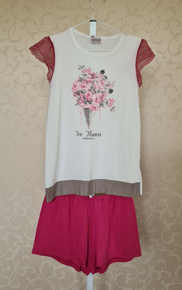 Пижама/домашний костюм Pepita, Италия, 95% вискоза, на XS-S, шорты не такие яркие как на фото, отдаю к обмену, футболку не носили, только постирана, экв 1500=