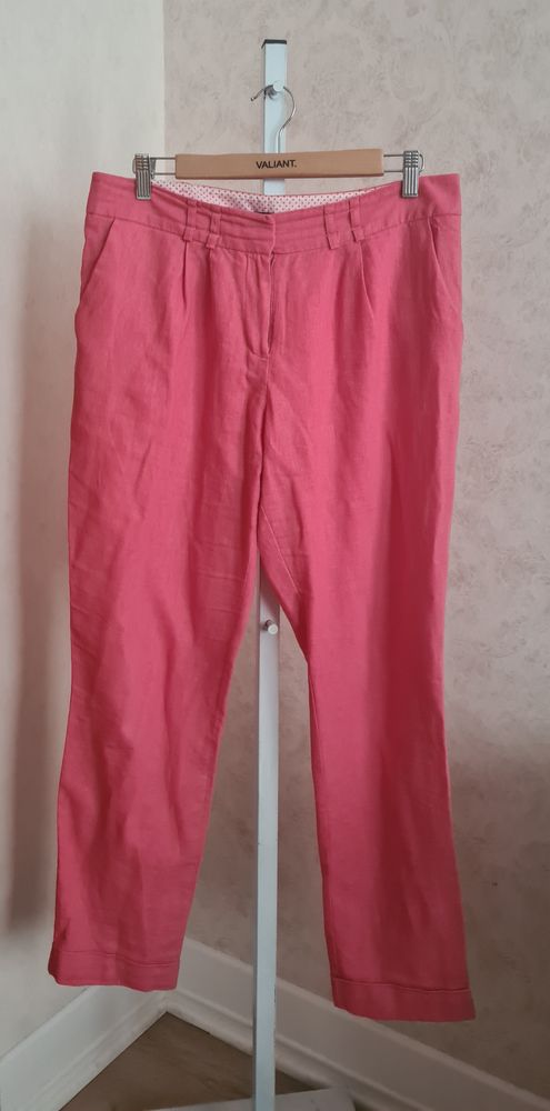 Брюки M&Co (Max Mara), маркировка 12, полный 46, лён/вискоза, цвет арбуз (светлый), очень комфортные, без нюансов, 2500=
