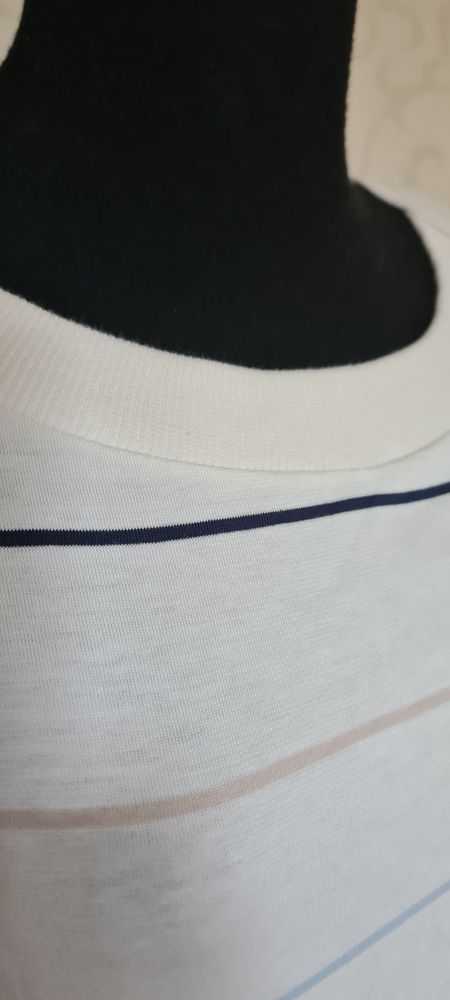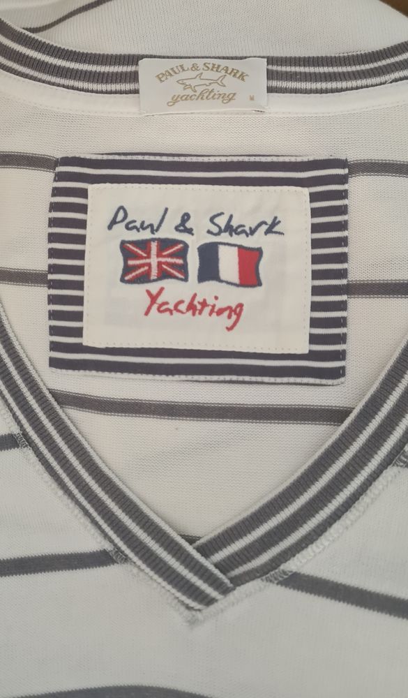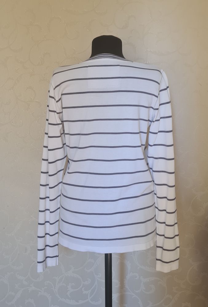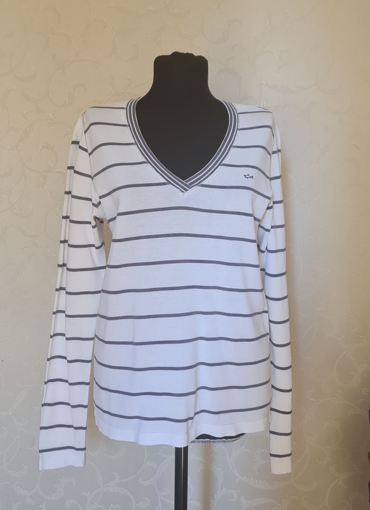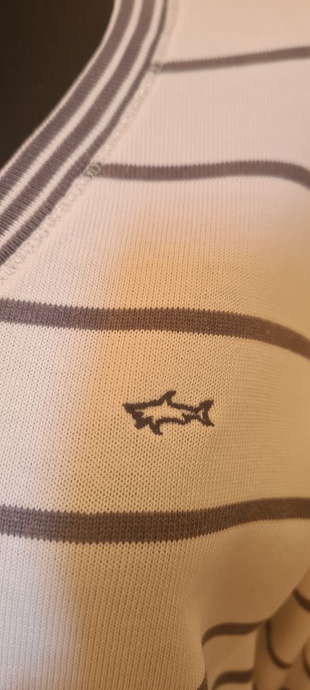 Джемпер Paul & Shark, маркировка M, но лучше на S, полоски бледно-сиреневые ("бледность" родная), без каких-либо нюансов, экв 5000=