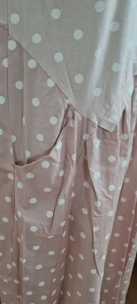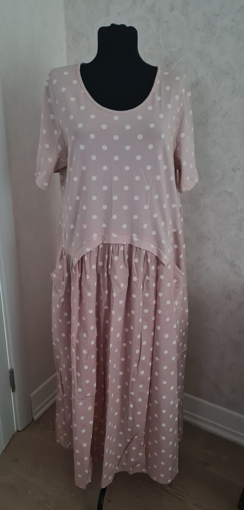 Летнее платье Италия, пудра, без каких-либо нюансов, надето на отдыхе 1 раз (на 52р), ооочень тянется, верх лёгкий трикотаж, низ хлопок-стрейч, подойдёт от 48 до 52 размера, замерю, экв 3000=