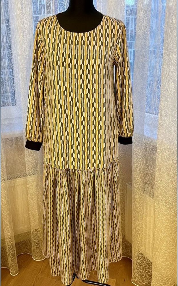 Платье на 46р, качество в каждой детали, летняя база, внизу на кнопочках, можно растегнуть для комфортной ходьбы, стильное, элегантное, одинаково хорошо с кедами и босоножками, экв 3000=