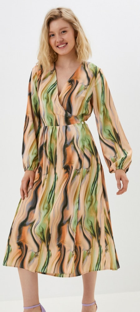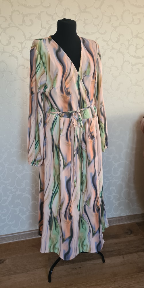 Платье Neohit, на 46р, эффектное, на запах, на подоле есть небольшие затяжки, в носке не видно, 700=