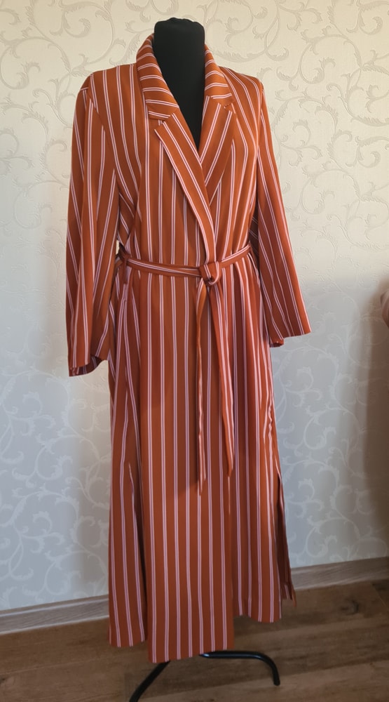 Платье HM, самая дорогая линейка, на 46р плюс/минус (оно на запах), цвет терракот, на фото оранжевым фонит, уменьшила по бокам слишком откровенные разрезы, 1000=