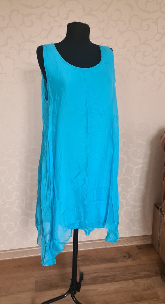 Платье Isilk, бренд одежды и аксессуаров исключительно из натурального шёлка, на подкладе, маркировка М, можно и S, надето несколько раз, цвет в реале небесно-голубой, посветлее чем на фото, шикарно на загорелое тело, 6000=