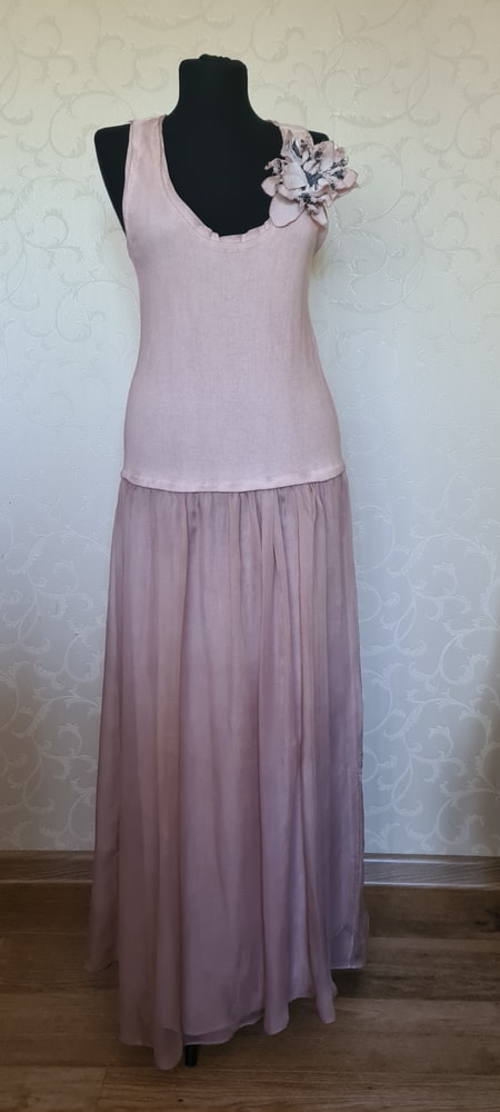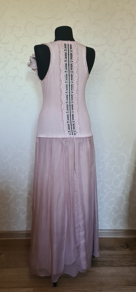 Платье цвета пыльной розы, на 44 (42,46 за счет трикотажного верха), Италия, очень комфортная посадка, меняла здесь новым, надето 1 раз, экв 3000=