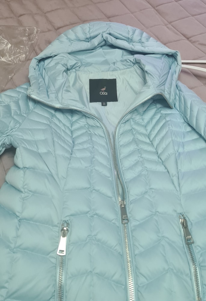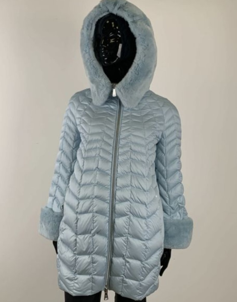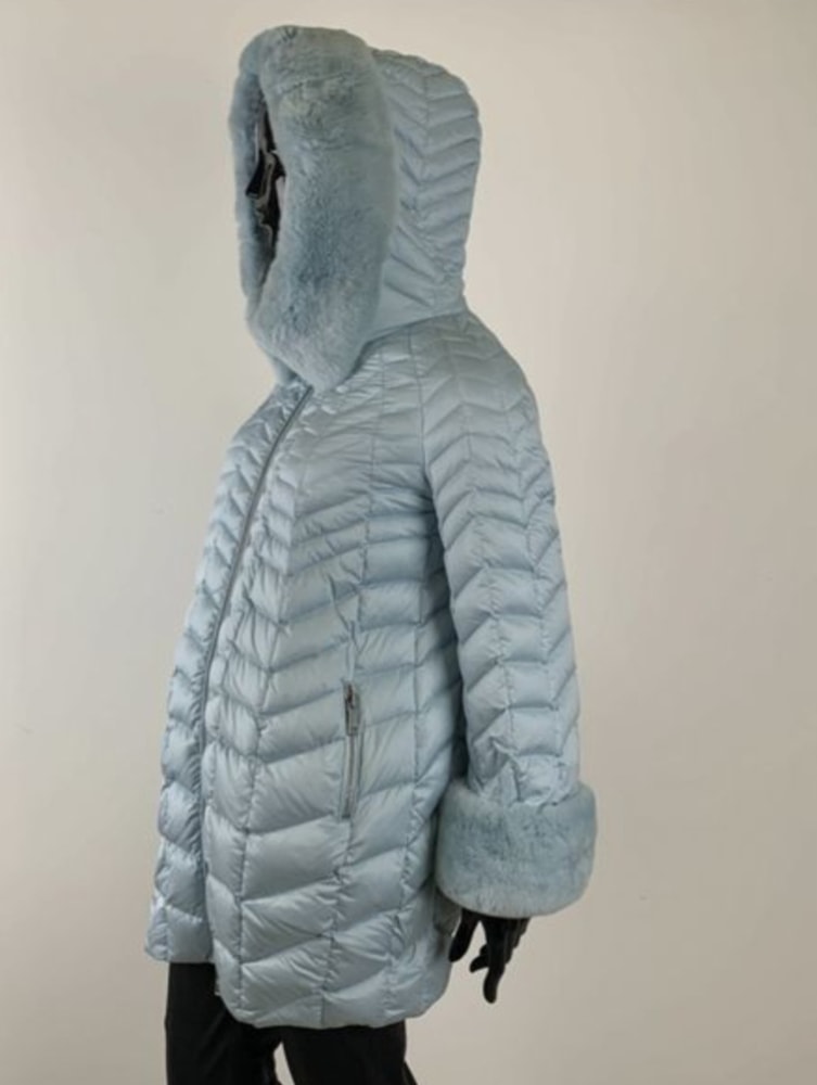 Пуховик Odri, маркировка итальянская 42, хорошо сядет на 42, 44-46, ПОГ 54 см, состояние отличное, цвет в реале нежно-голубой, мех съемный, меняла по экв 25000, сама не носила