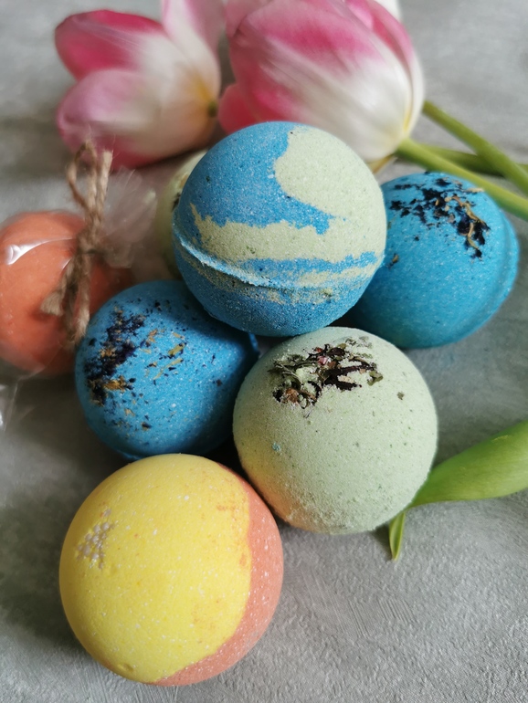 Бомбочки-шипучки для ванн, с добавлением витаминов А и Е. Ароматы разные.