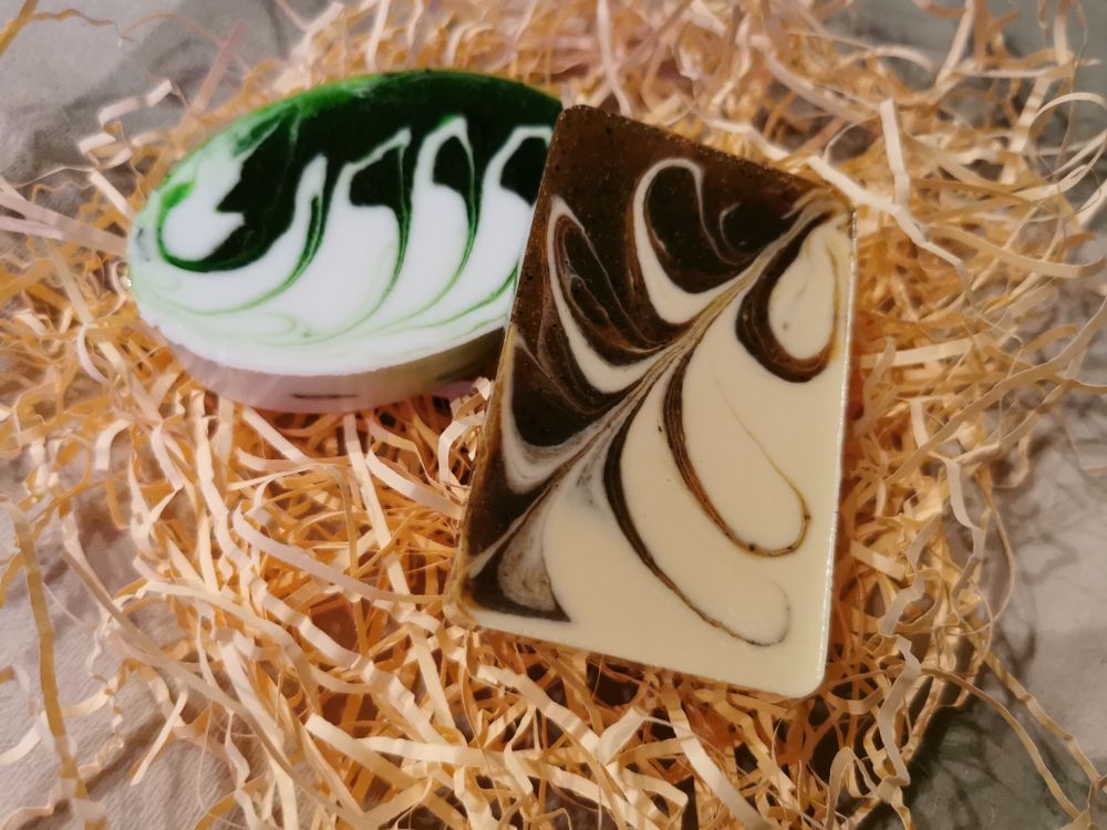 Мыло с натуральными маслами, витаминами А и Е. Индивидуальный рисунок у каждого, второго идентичного никогда не получится) Кусочки весом около 80 гр (плюс/минус). Ароматы разные. Экв 250 р/шт