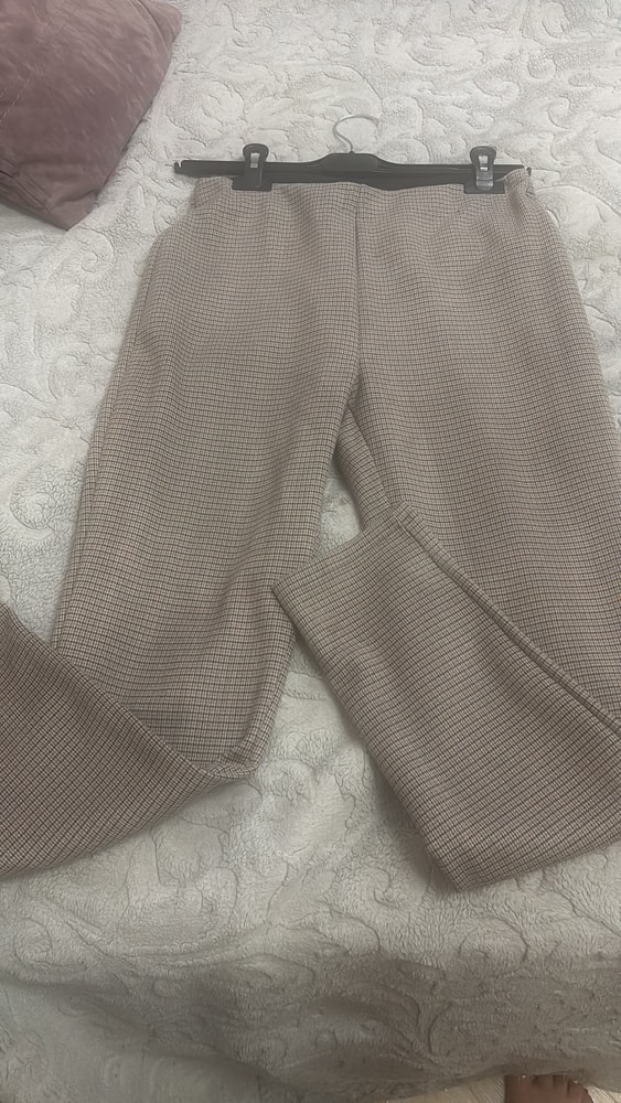 Бежевые брюки скинни 158/164, ткань похода на велюр, в очень мелкую клетку. Тянутся отлично. 2000