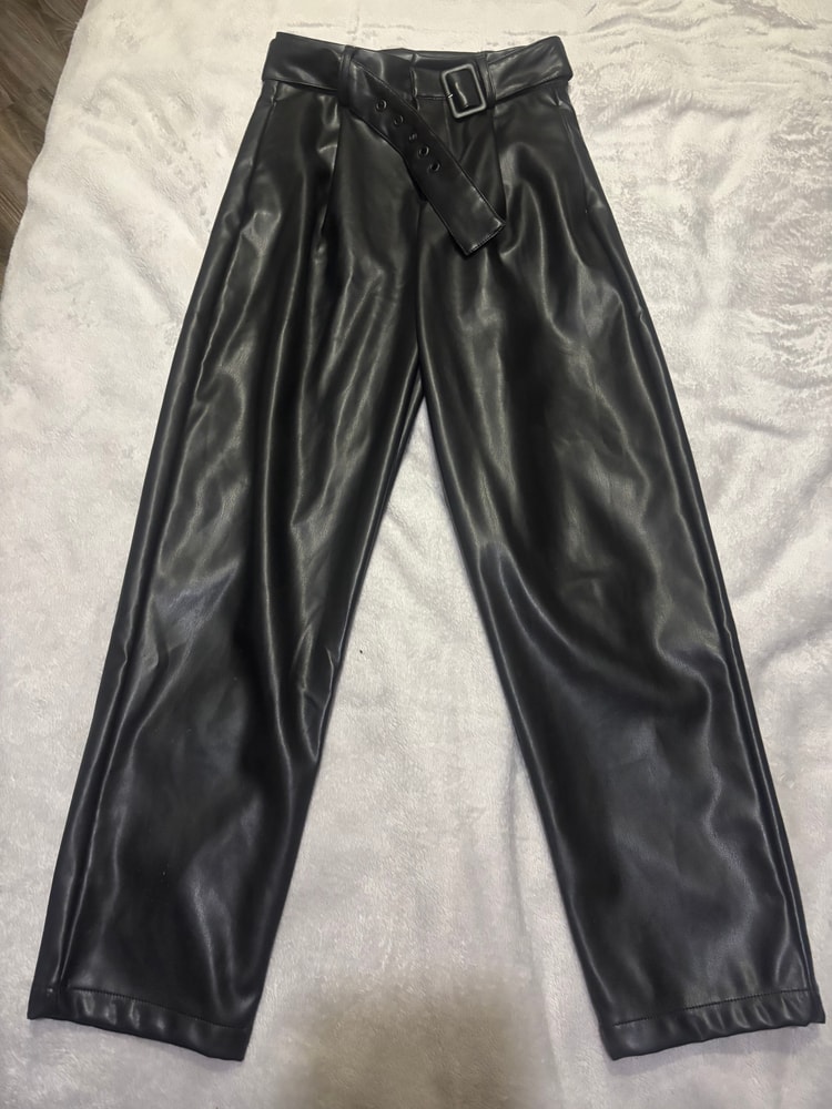 брюки из экокожи акула в отличном состоянии, р 158. Прямые, не в облипку и не широкие. Ремень в комплекте. 2000