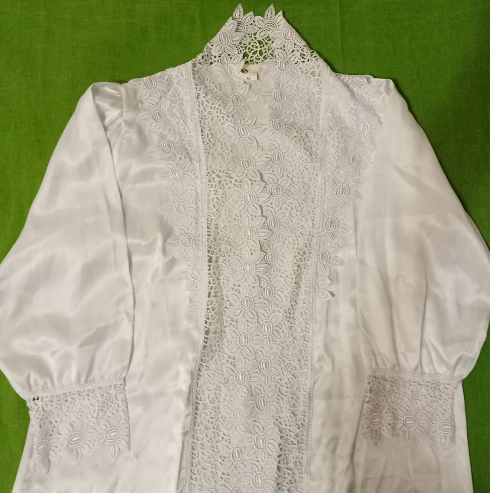 2.Шикарный халат. Халат длинный, отделка красивым кружевом, белоснежный наряд. Ткань типа атласа, или иск шёлк, точно не скажу. Размер М, на 42-44. Одевала раза 3 максимум. Именно такой не нашла в инете. Мой экв пусть будет 400(условный).