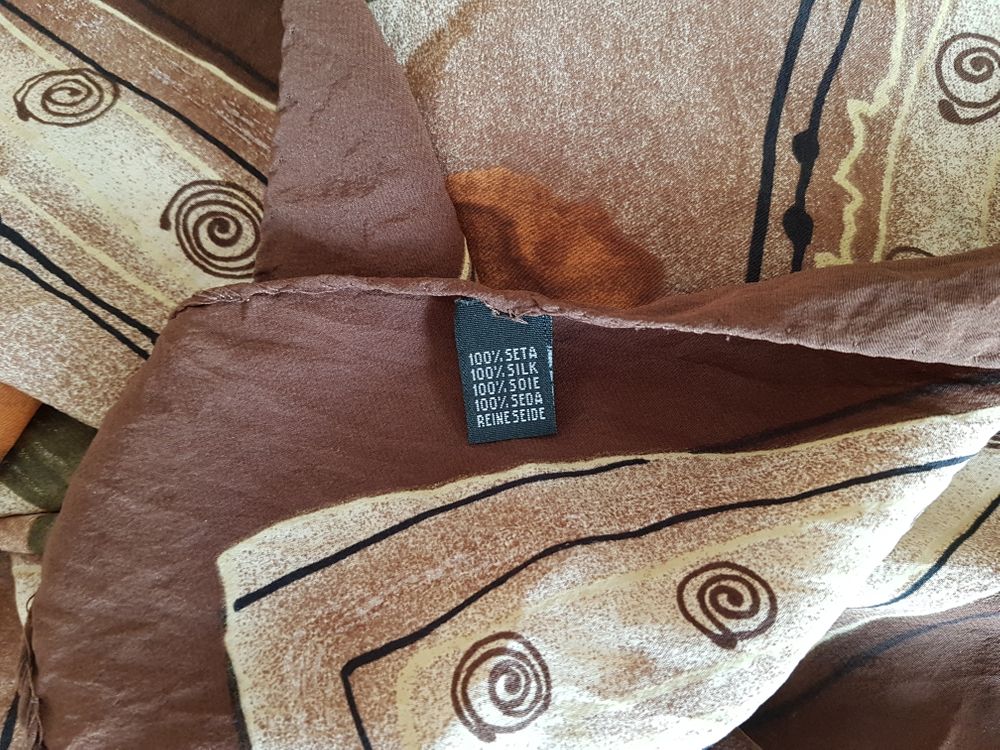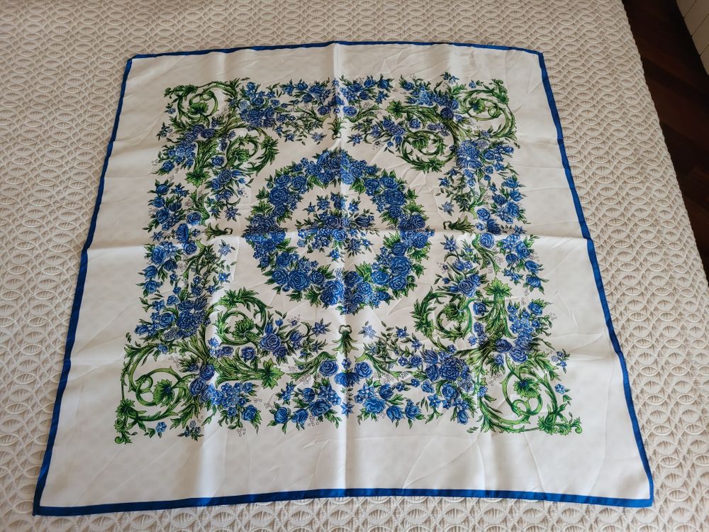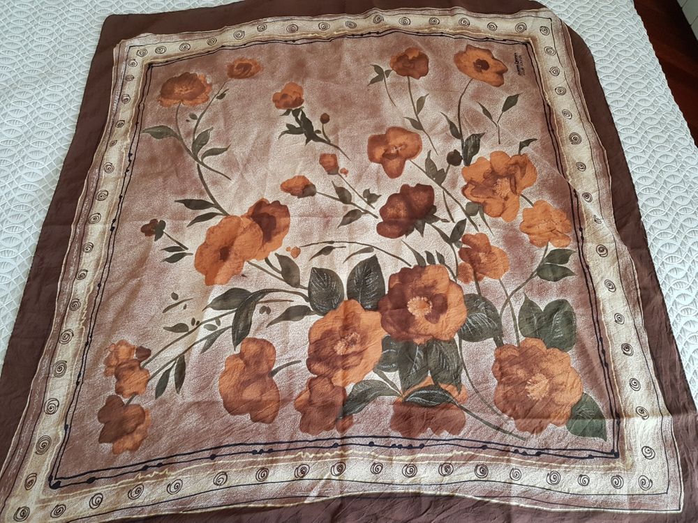 9. Шелковый платок, в прекрасном состоянии, но с одной стороны обметка разошелся шов (фото) - легко в ателье поправить. 87*84 Экв 700 руб.