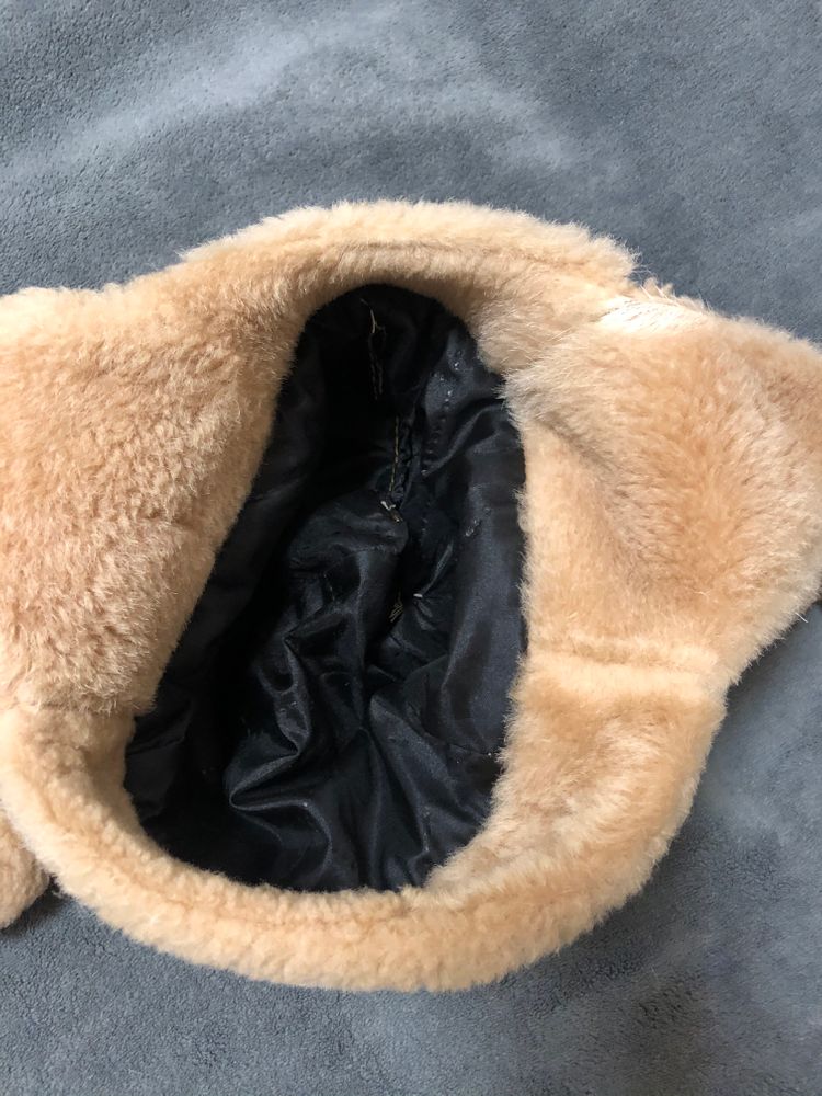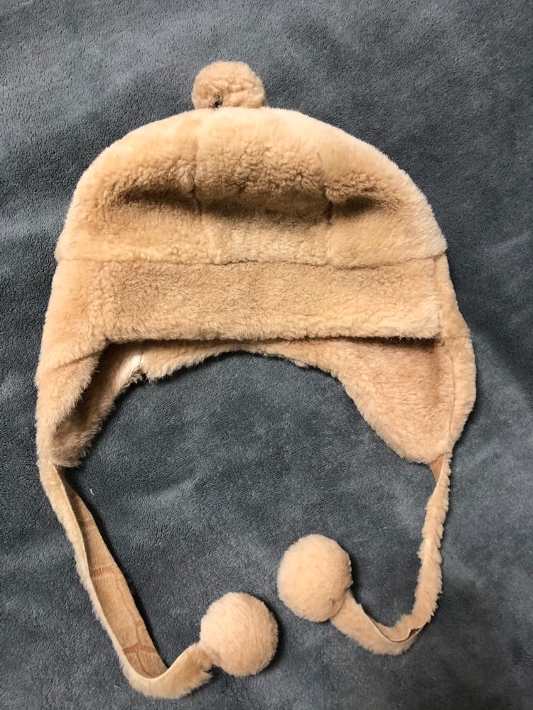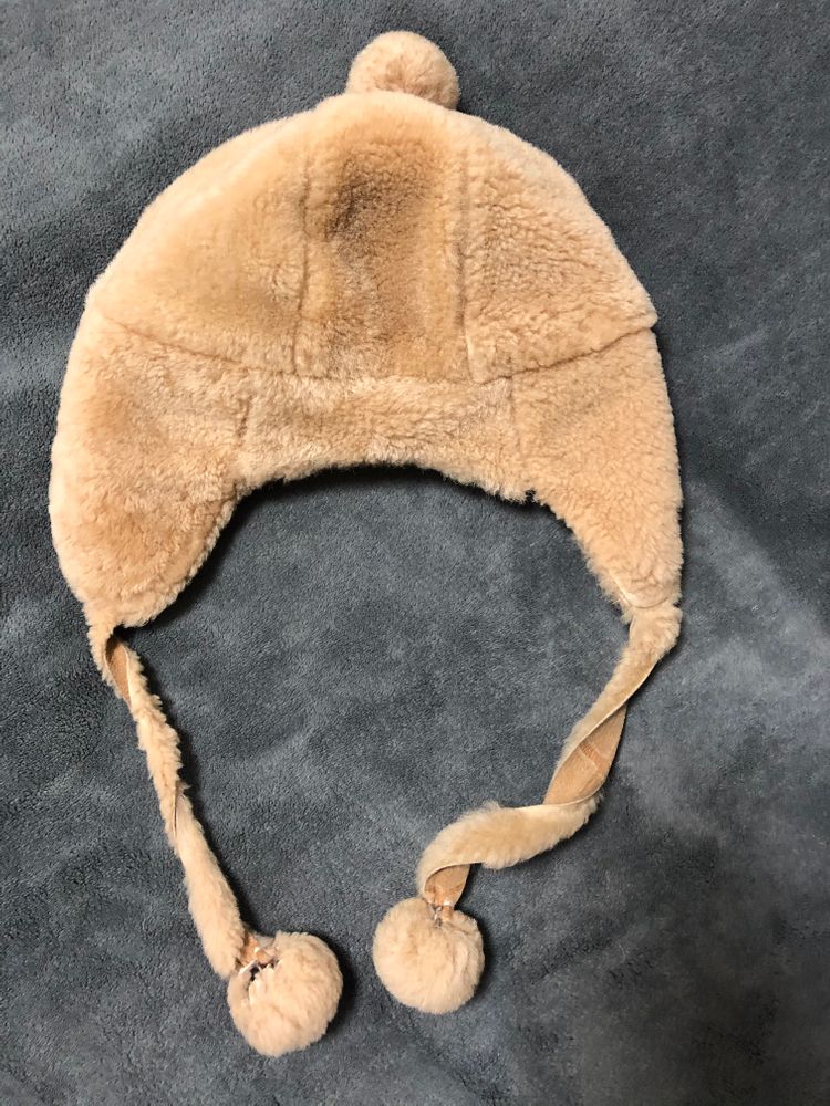Шапочка из овчины,состояние отличное.Экв 1500. С размером сложно:примерно на возраст7-9 лет.