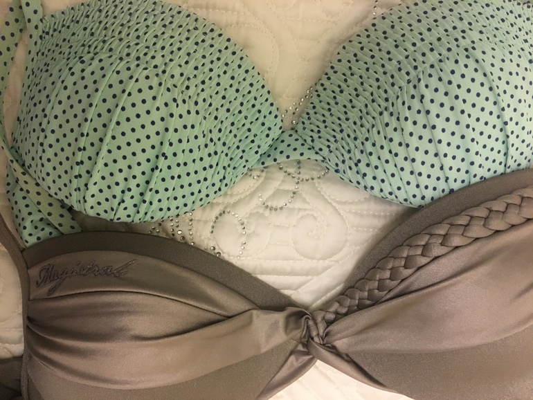 Решила расстаться с любимыми купальниками, один раз брала их в отпуск. Размер у меня был 42-44, бюст 70В, ОБ около 93-95 см. Кальцедония мятный, встроенный Пуш-ап . экв. 1500