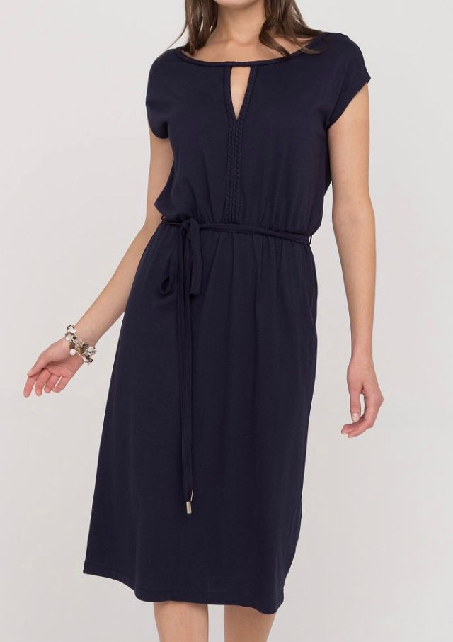 Платье Sela, летнее, трикотажное, темно-синее. В идеале, я пару раз надела. Размер M. Экв. 500