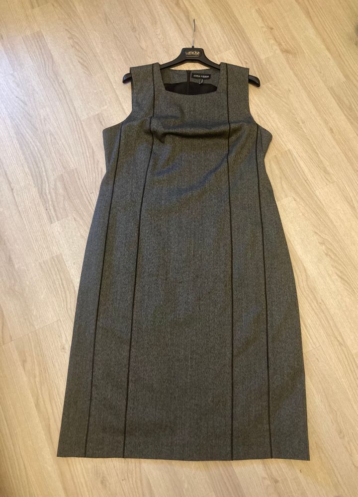 Платье бренда Anna Verdi, 52 размер. Длина 106 см. Носить с блузкой, водолазкой, ткань не летняя. С подкладом, сзади разрез. К сожалению бирки с составом не сохранились. Идеальное состояние. Идеальная посадка по фигуре. Пошив люкс. Экв. 1000