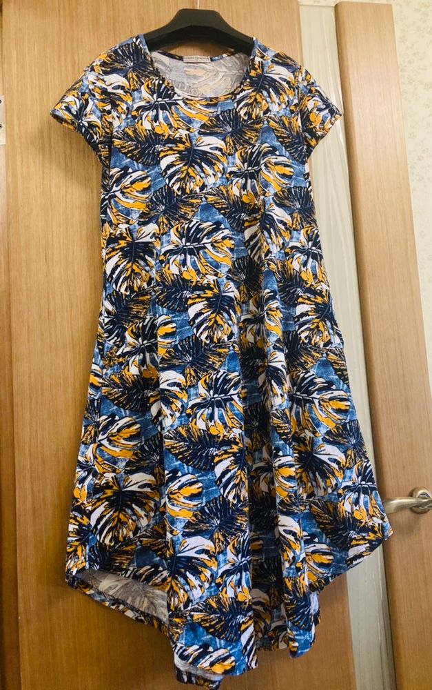 Пару раз надетое домашнее платье, хлопок-трикотаж. Примерно на 48 размер. Экв. 800