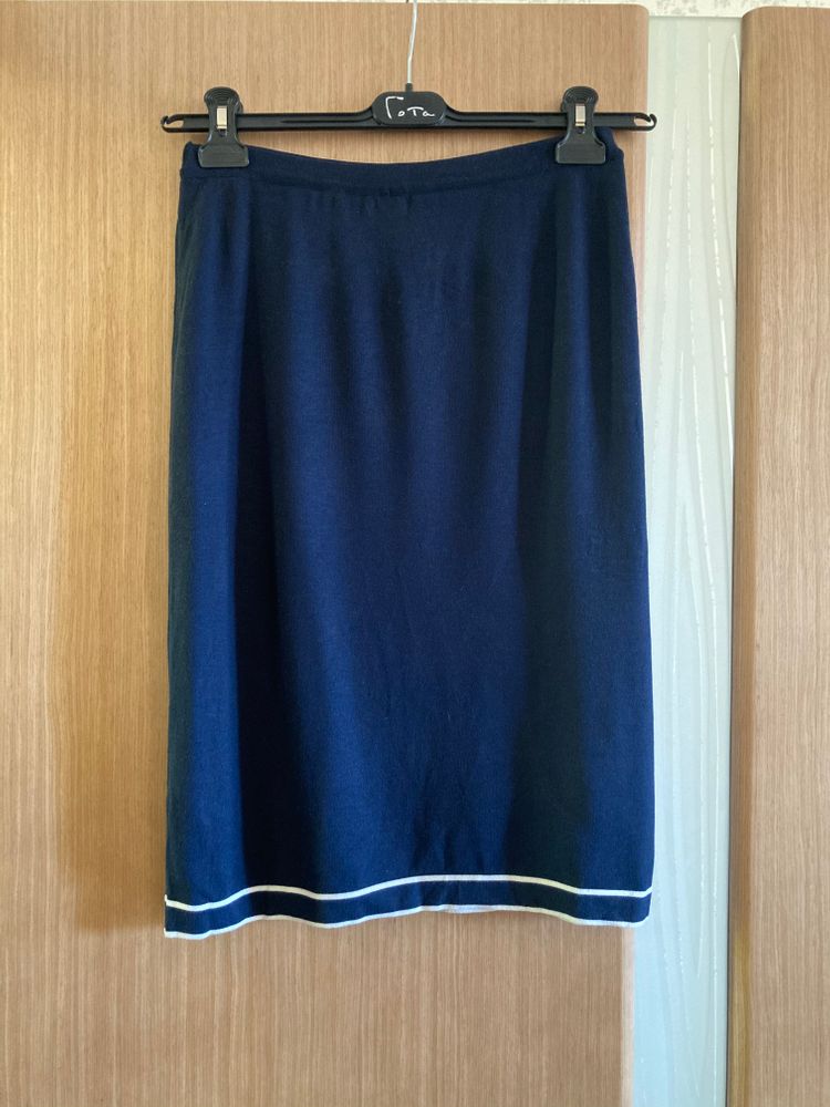 Юбочка трикотажная на подкладе, размер около M, длина 61 см, ширина по бёдрам 48 см, тянется очень хорошо. Польской фирмы Ancora collection. Экв. 500