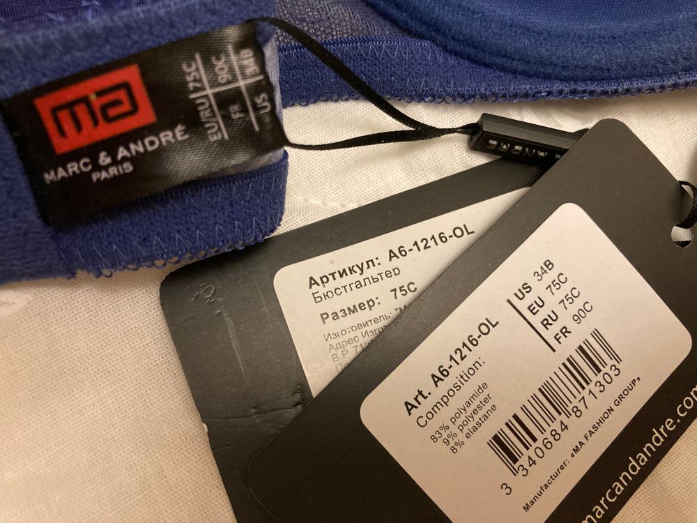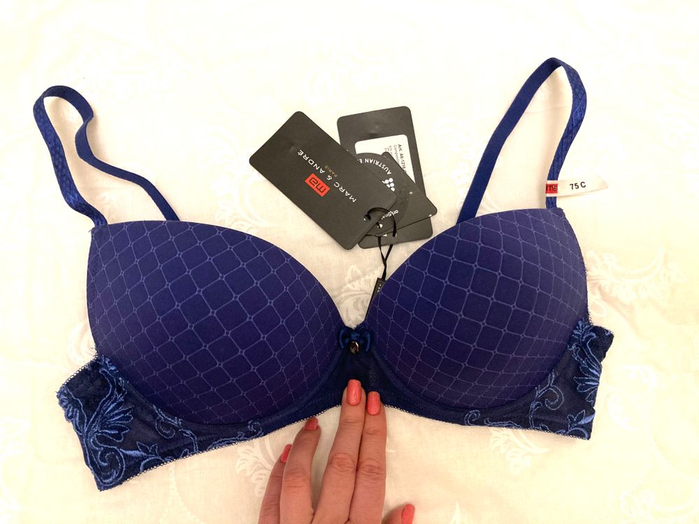 Новый бюстгальтер Mark&Andre, размер 75C, пуш-ап, синий. Экв. 3000