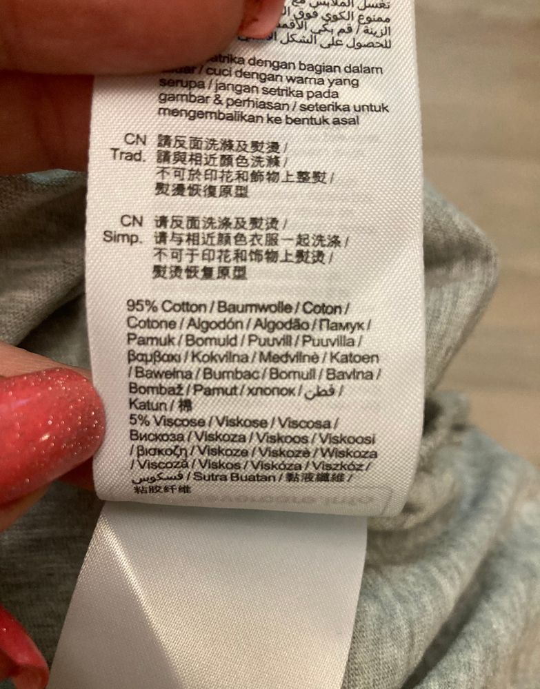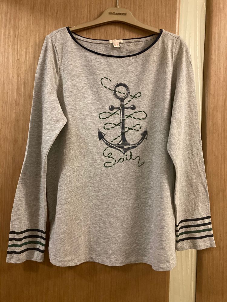 Лонг Esprit, маркировка XL, по мне так около 48 размера. Хлопок тонкий футболочный. Новый, но постиран. Длина 63, между подмышками 48, рукав 59 см от плеча. Экв. 400