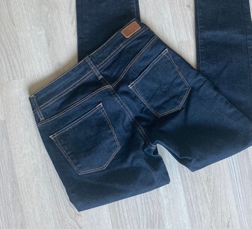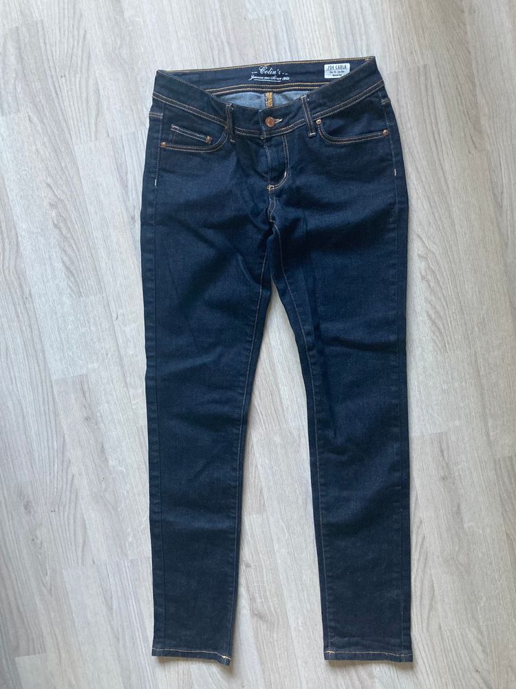 Джинсы Colins, размер 28-32, примерно 44-46, шаговый 78 см, посадка невысокая. Ткань немного тянется. Состояние близко к новому. Экв. 500