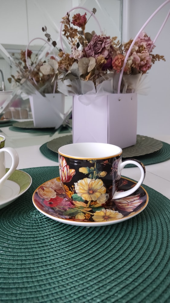 Чашка большая с блюдцем (есть маленький скол на блюдце, смотри фото), экв 350