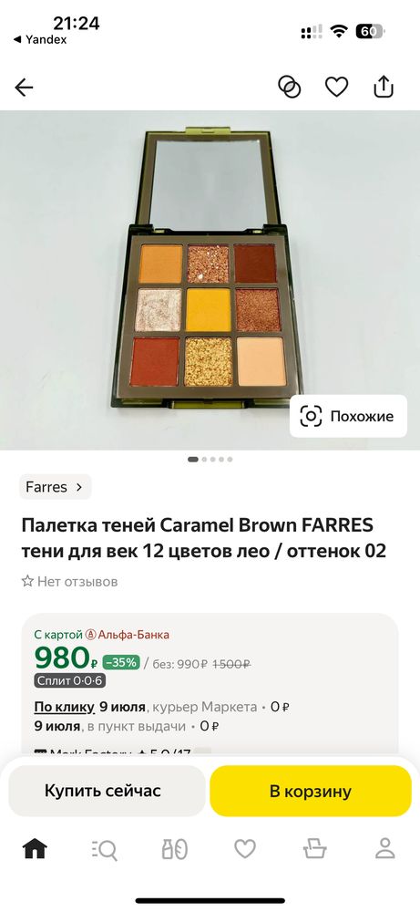 Паллетка теней. Снята верхняя пленка, тени новые. Это был подарок, но оттенки не мои. Срок годности 07.2026 г. Экв.900