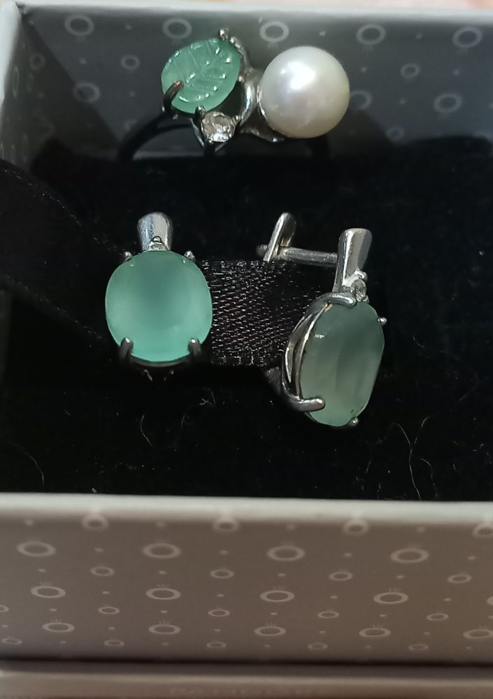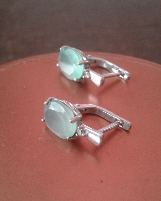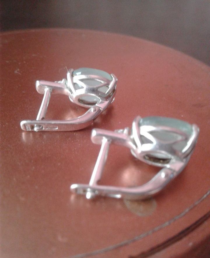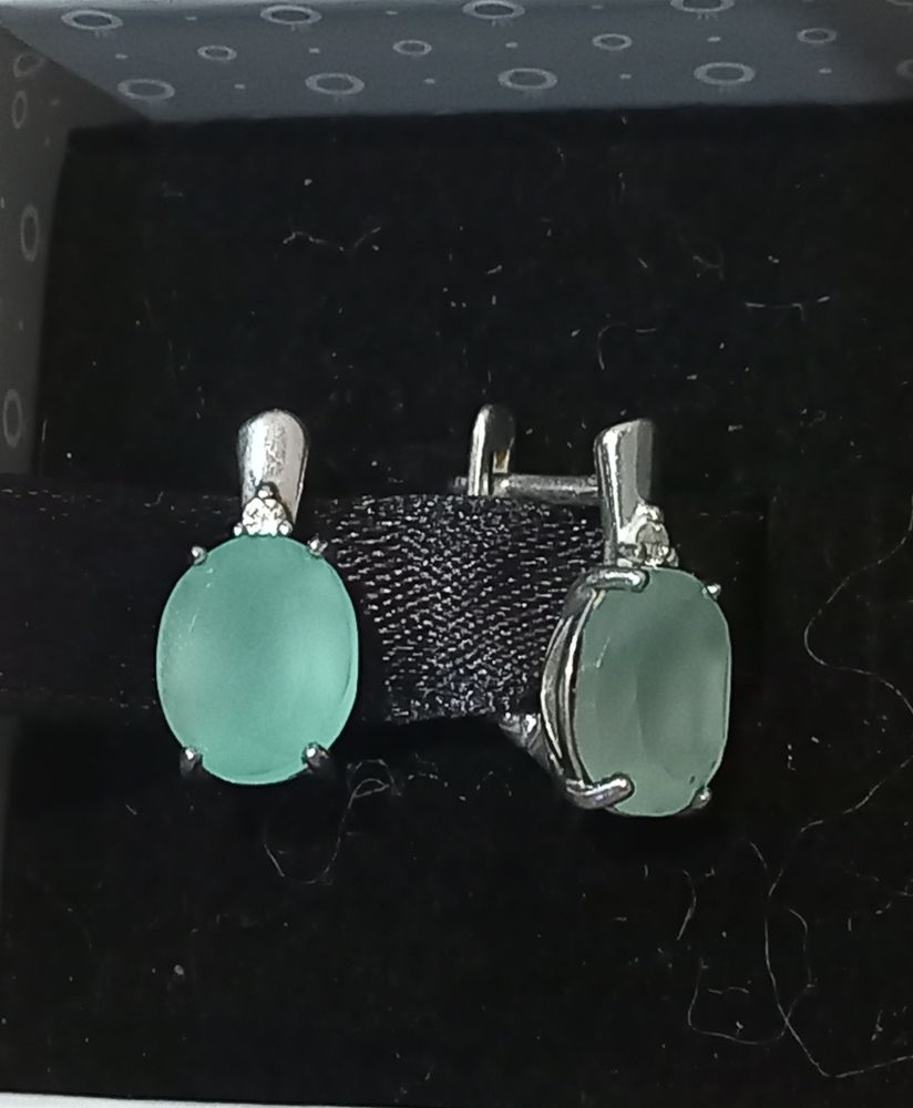 Серьги серебро, камень агат светло-зеленого цвета и совсем мелкий фианит) - в идеальном состоянии 3000