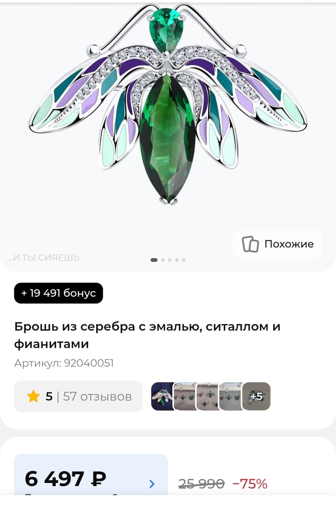 Брошь "Светлячок", цена в "Соколов" 6390https://sokolov.ru/jewelry-catalog/product/92040051/