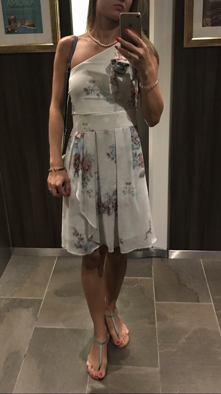 Серебристо-чёрное с бантом Piena Италия р .S длина 94 см, ширина между подмышками 80 см тянется, талия 66 см тянется . 92% poly 8% Lycra экв 4200 руб