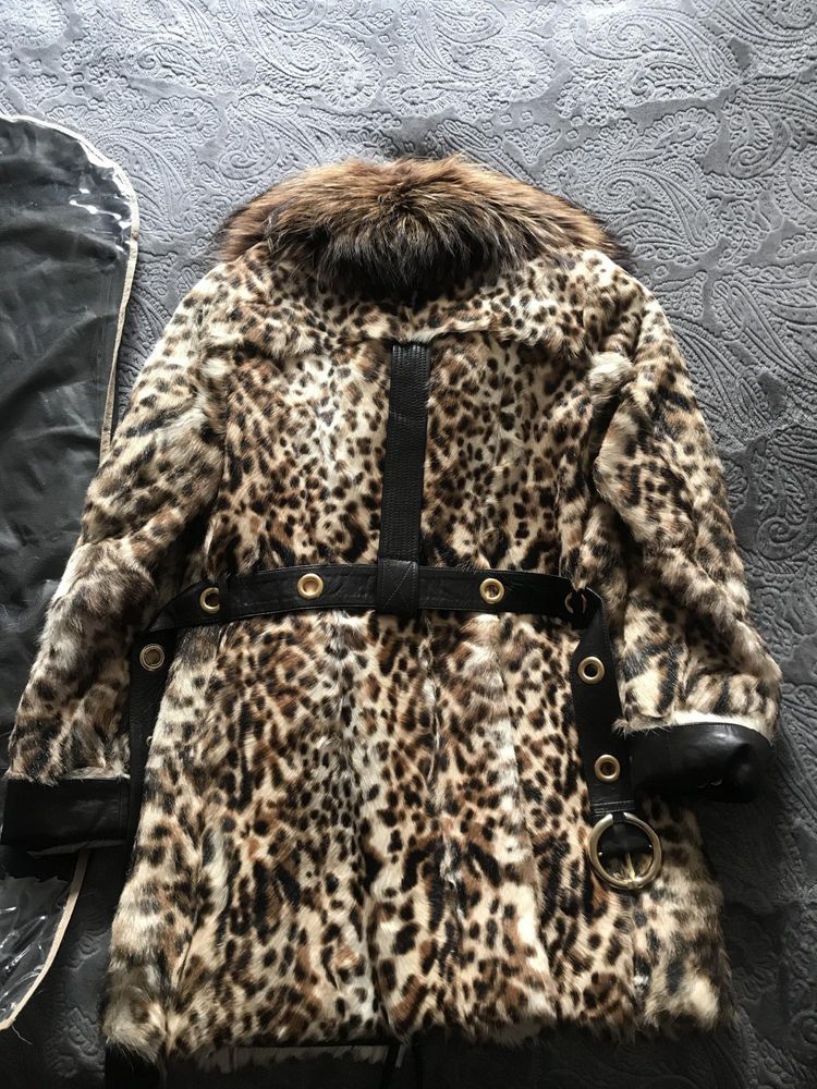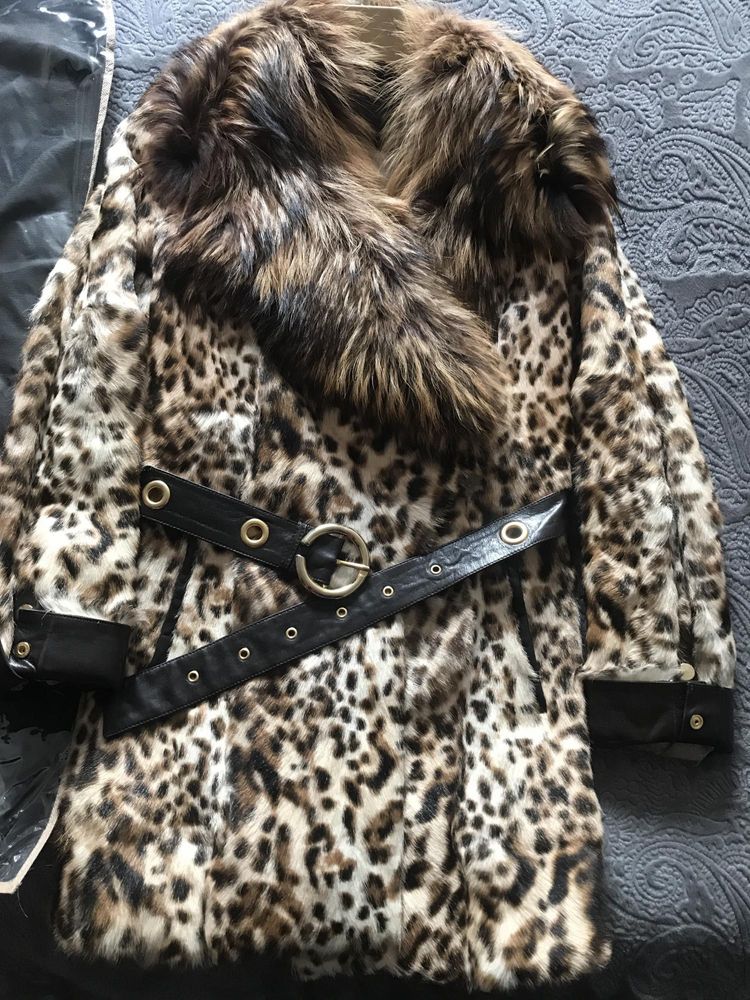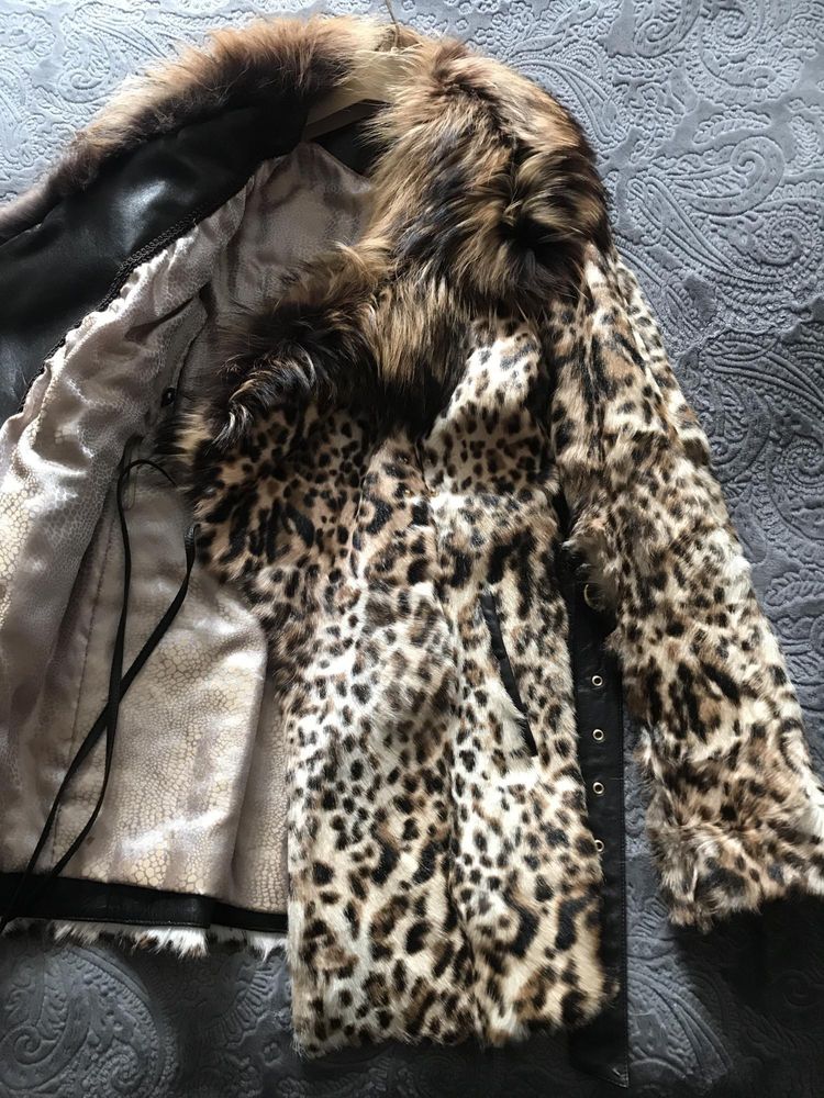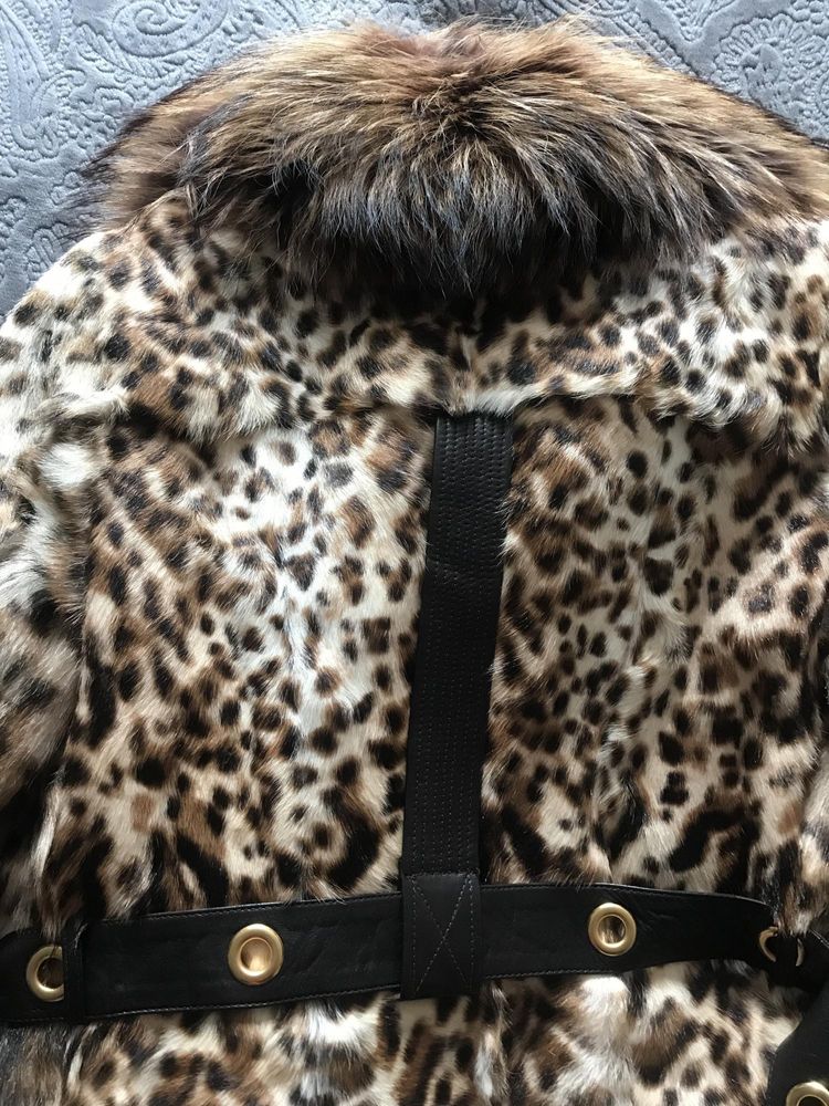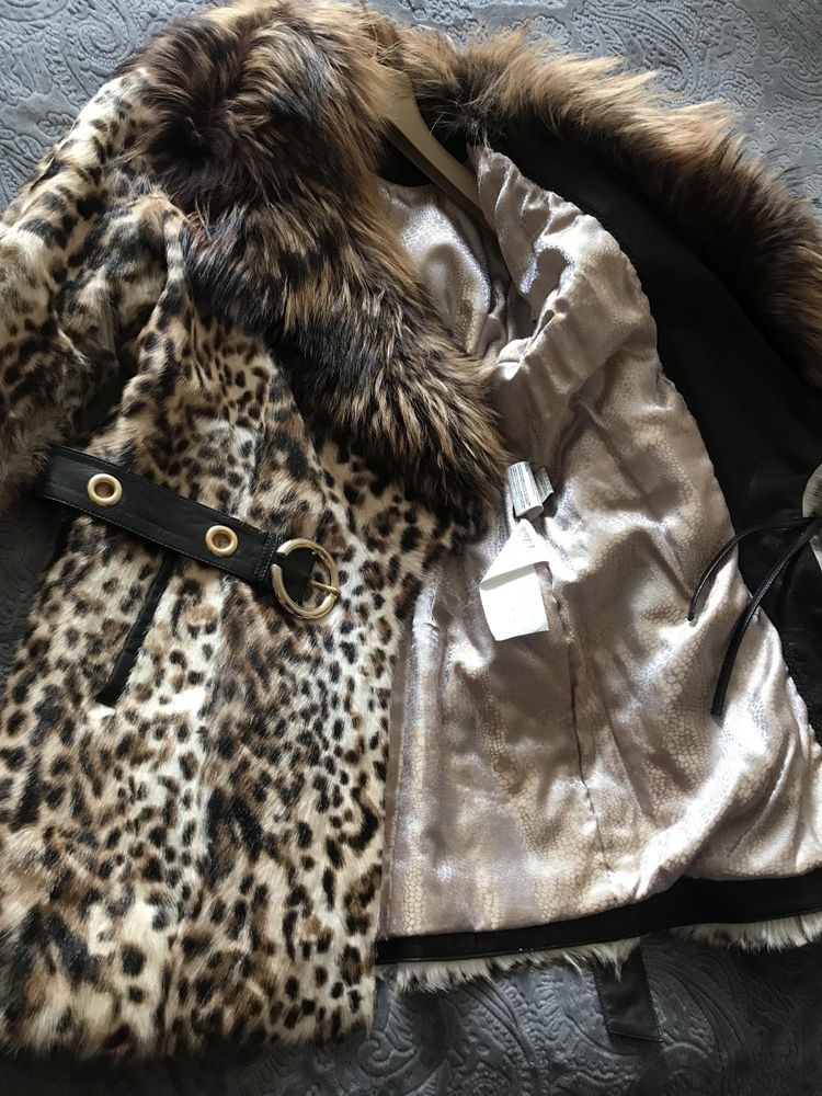 Воротник- натуральный мех лисы. Пальто/шубка -натуральная овчина ,окран леопарда.