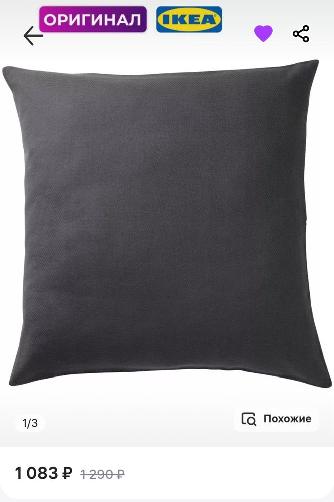 Наволочка ИКЕЯ, 100%хлопок. Цвет графит. Экв. 1000 руб.