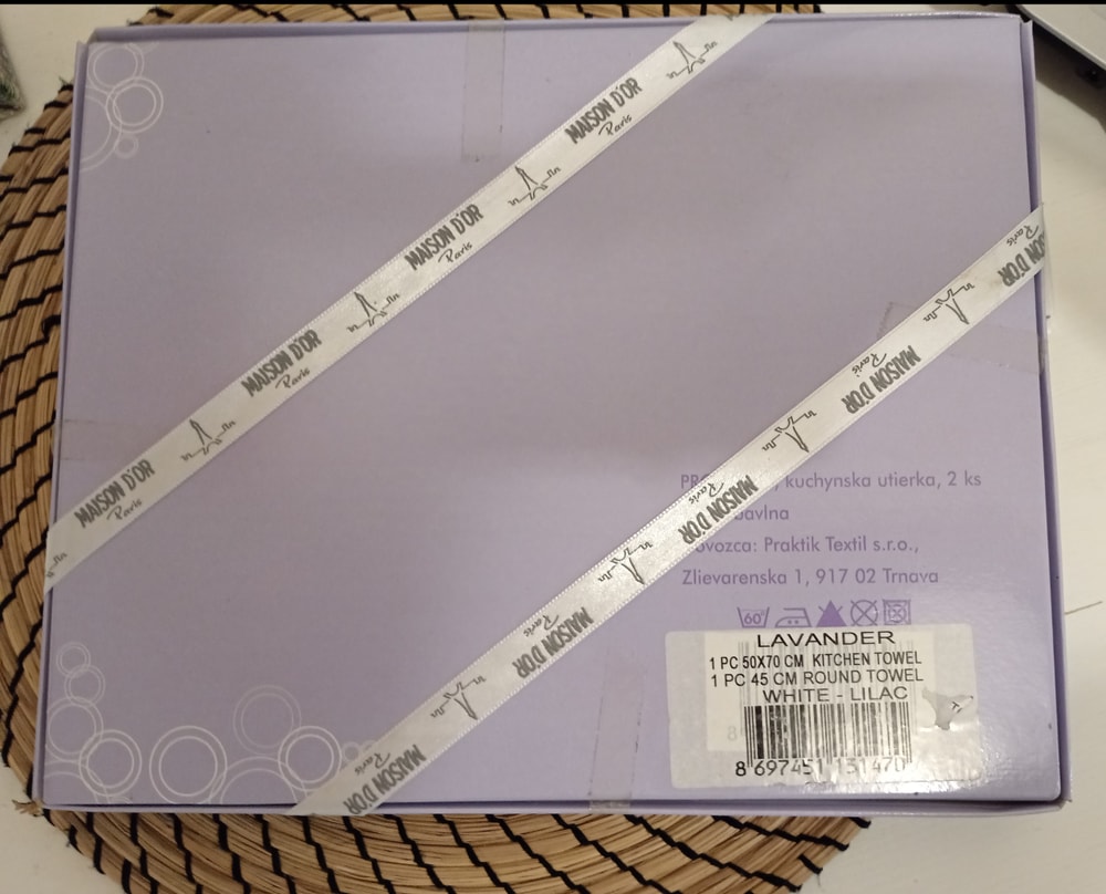 Полотенце "Lavender", размер примерно 90 на 45. Не указан на коробке. Пришлось вытащить и обратно упаковать красиво). Новое. 800 руб.