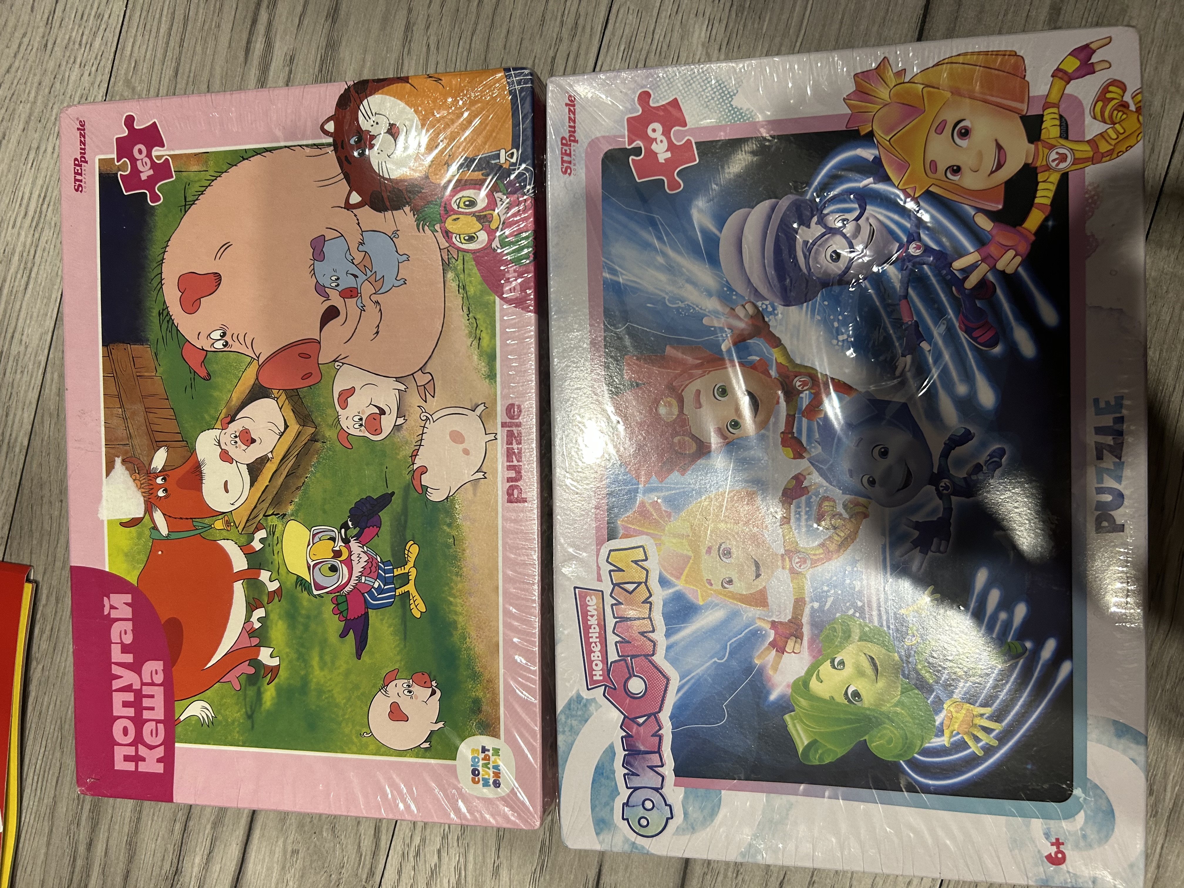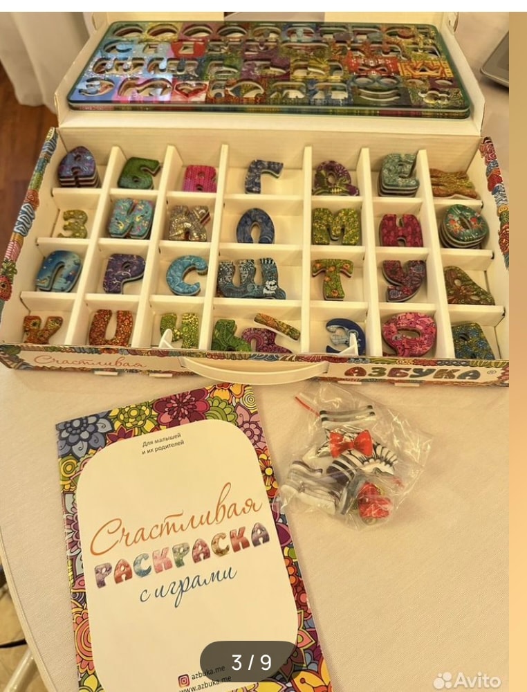 Новый запечатанный набор Счастливая азбука. Азбука выполнена из оргстекла и пластика. Магниты запаяны внутри. Разноцветные буквы с принтом на эту букву. Лёгкие, приятные на ощупь. Отлично крепятся к магнитной доске или холодильнику. Можно купаться в ванной. Два сортера с буквами. Отличный подарок 4000 руб