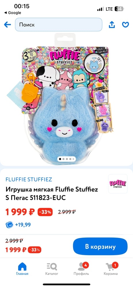 игрушка Fluffie Stuffiez Small Plush Единорог/Пегас один раз общипали шерсть, больше не играли) экв 1000