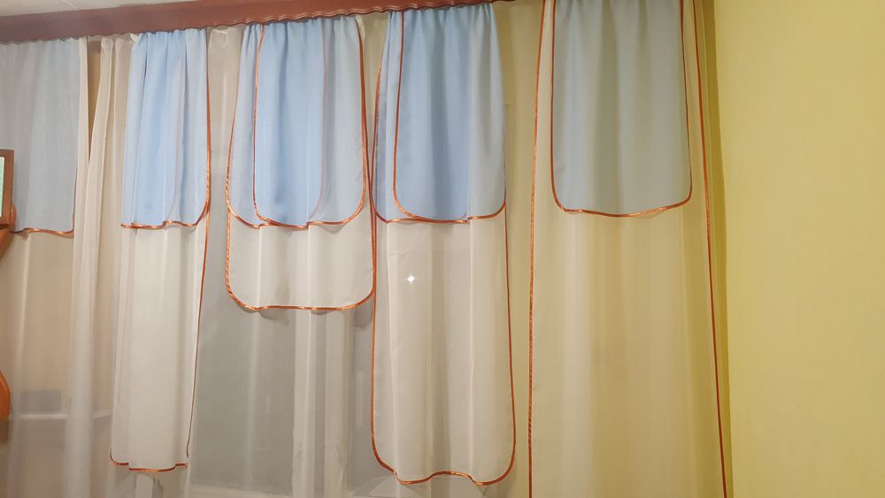 тюль-вуаль 3 метра высота 2м65 с ламбрекеном б\у, не в идеале ,есть зацепки,дырочки , для дачи, или на перешив. Ламбрекен по разному можно вешать к нему есть кольца , все полотна отдельные ,можно и на меньшее окно,просто полотен будет меньше.экв 1000