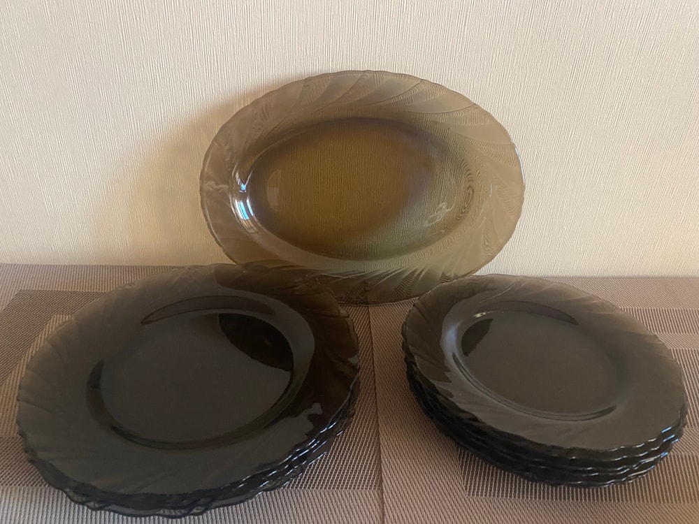 1) Посуда из прочного затемнённого стекла Luminarc. Производство Франция.Можно мыть в посудомоечной машине и подходит для микроволновки. Состояние новой.