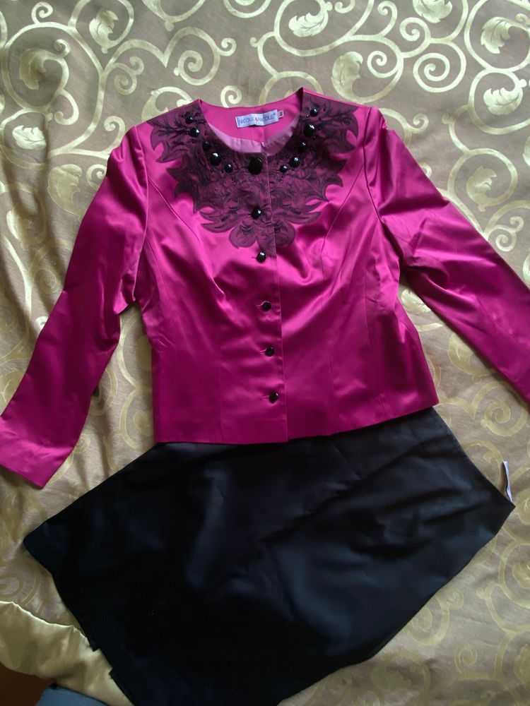Шикарный костюм качественного белорусского бренда 48 размер надевался 1 раз на торжество.Пиджак,юбка и блузка комплектом экв 5000