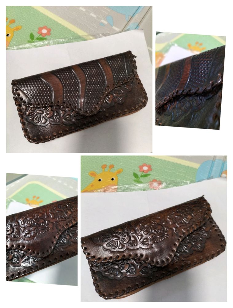 Кошелек кожаный, ручная работа, привезен из Иордании. Новый. Где кнопки, есть небольшие следы клея- технология производства, но, думаю, что при использовании они сойдут. Рельефные рисунки на коже, разные с каждой стороны. Очень необычная эксклюзивная вещь. Экв. 4000 руб.