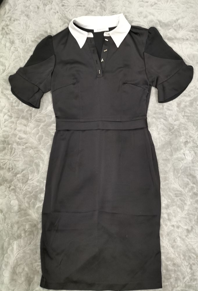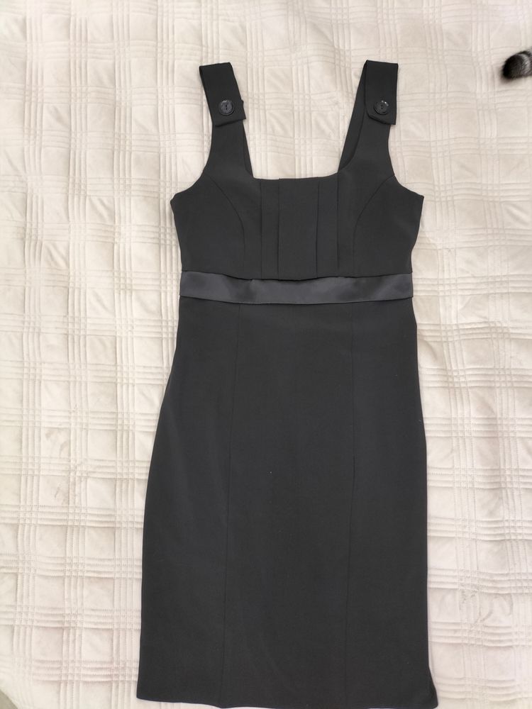 Сарафан черный, без подкладки, на рост до 160 будет немного ниже колена. Отлично сядет на 42-44 разм. Впереди атласная вставка, сарафан очень стройнит, ткань немного тянется. Застёгивается сзади на молнию и имеет небольшой разрез посередине. Сарафан б/у, но он ещё в очень хорошем состоянии. Экв. 500 руб.