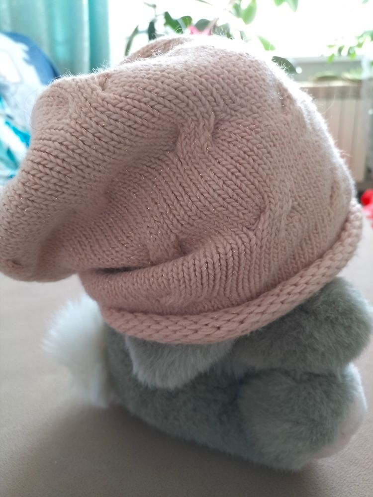 Шапка на небольшую голову, подойдёт девочке-подростку. Шапка бежевая, нарядная, цвет универсальный, состав - шерсть, акрил, люрекс, теплая, мягкая, состояние идеальное, переобмен, экв. Снизила до 500