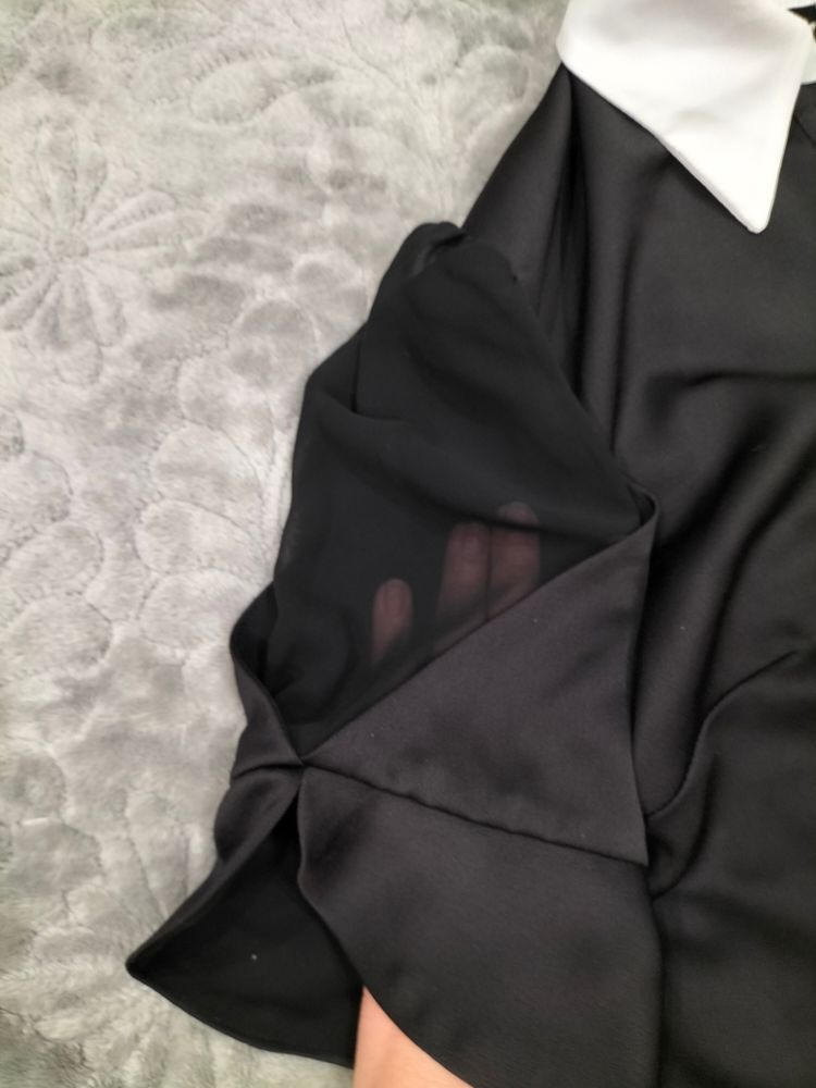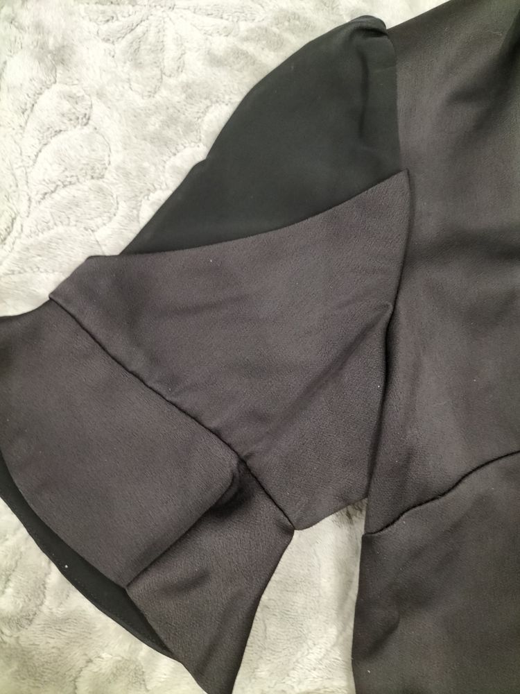 Платье от турецкого бренда Bovona, красивая с отливом черная ткань, приличная длина на рост 160 до колена, отлично сидит по фигуре, стройнит, шикарная модель, интересный рукав с шифоновой вставкой. Разм. 42-44. Экв. 1000