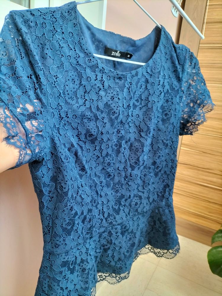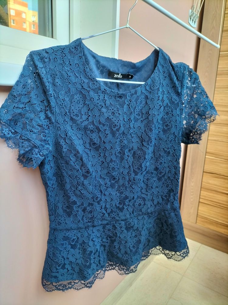 Темно-синяя блузка с коротким рукавом, на 42 разм, в отличном состоянии, цвет немного темнее в реальности, экв. 400