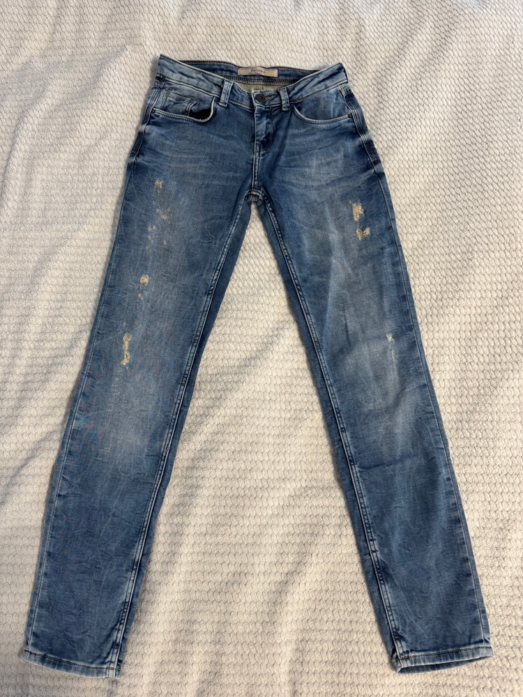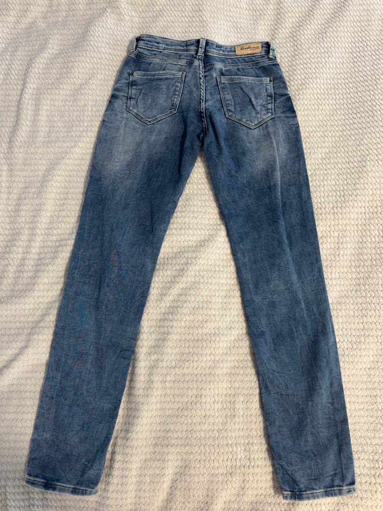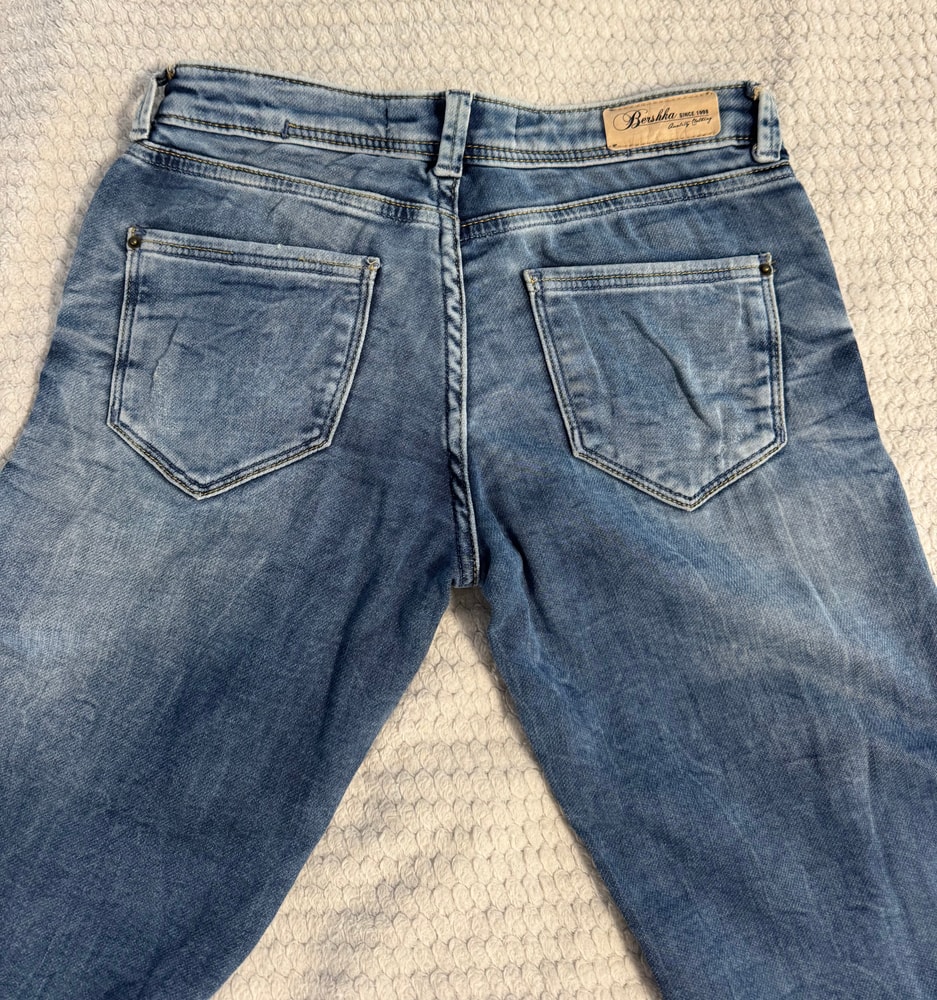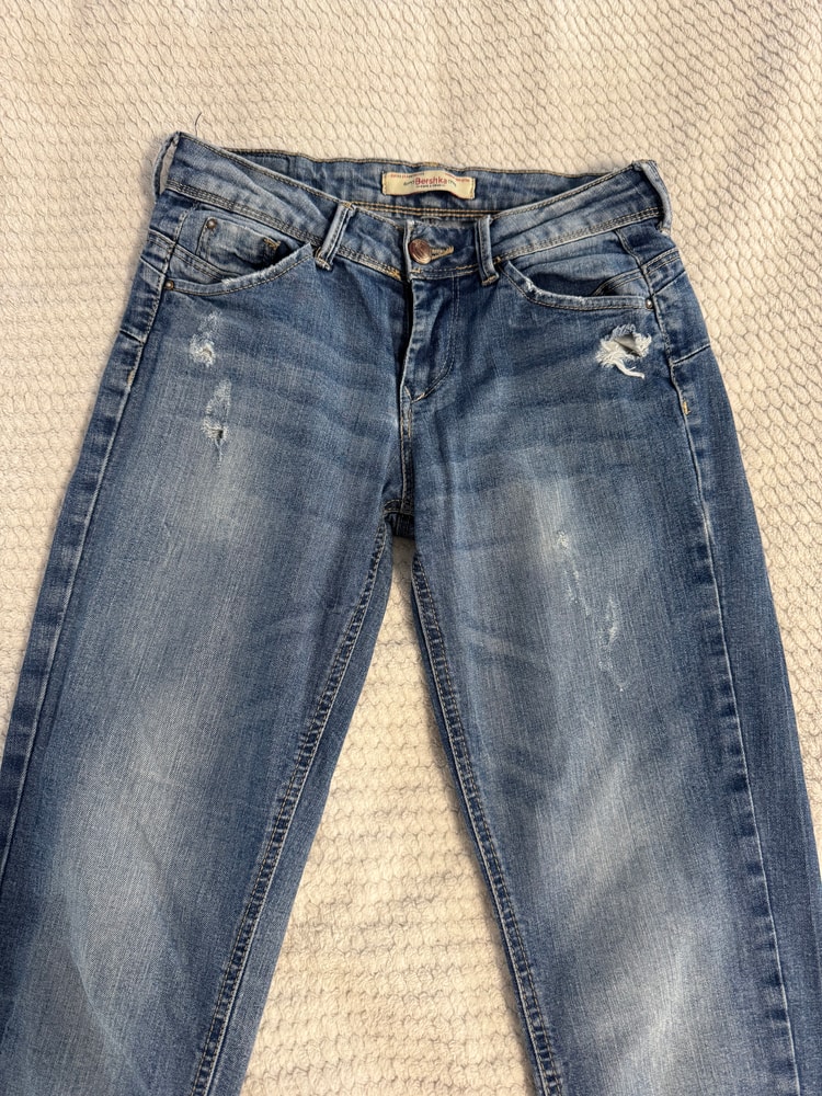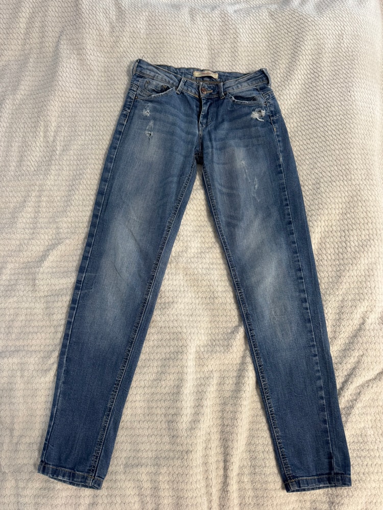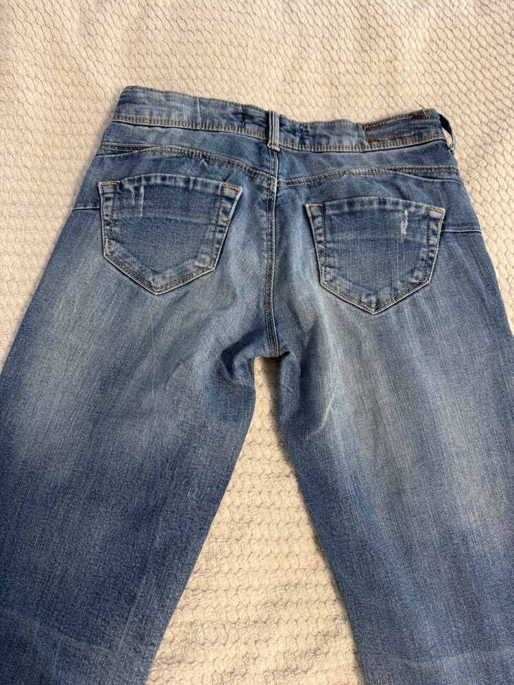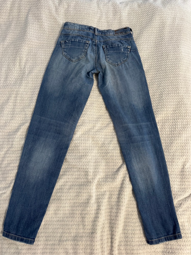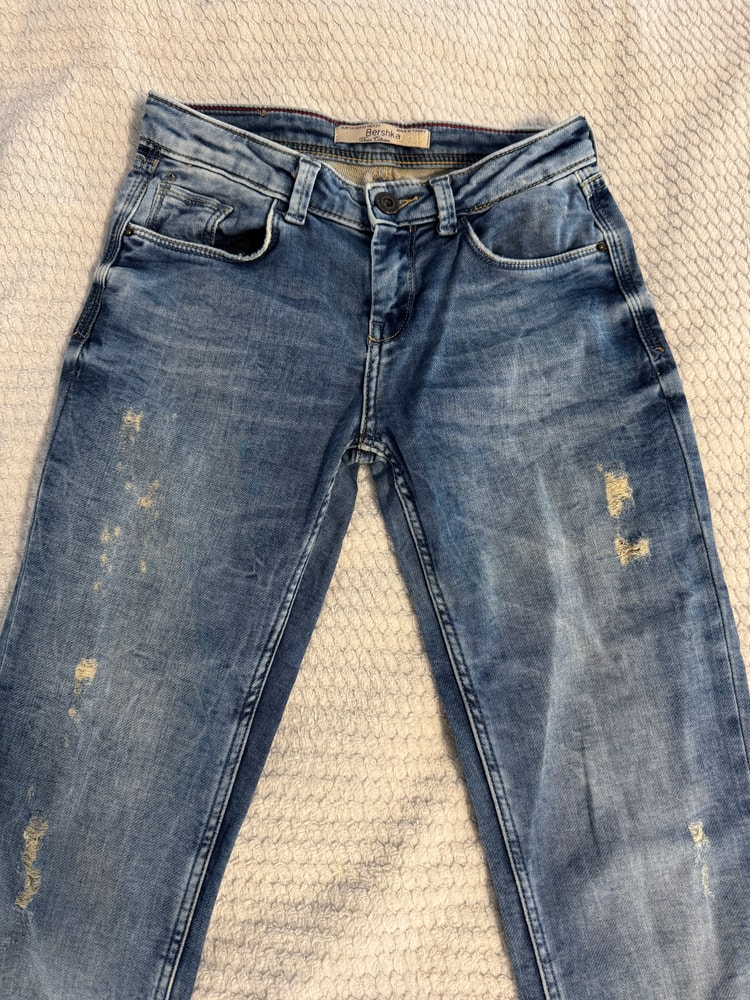 Замеры: талия п/о 32 см, бёдра 44 см, длина 91 см, шаговый шов 72 см, ширина штанины внизу 13 см
